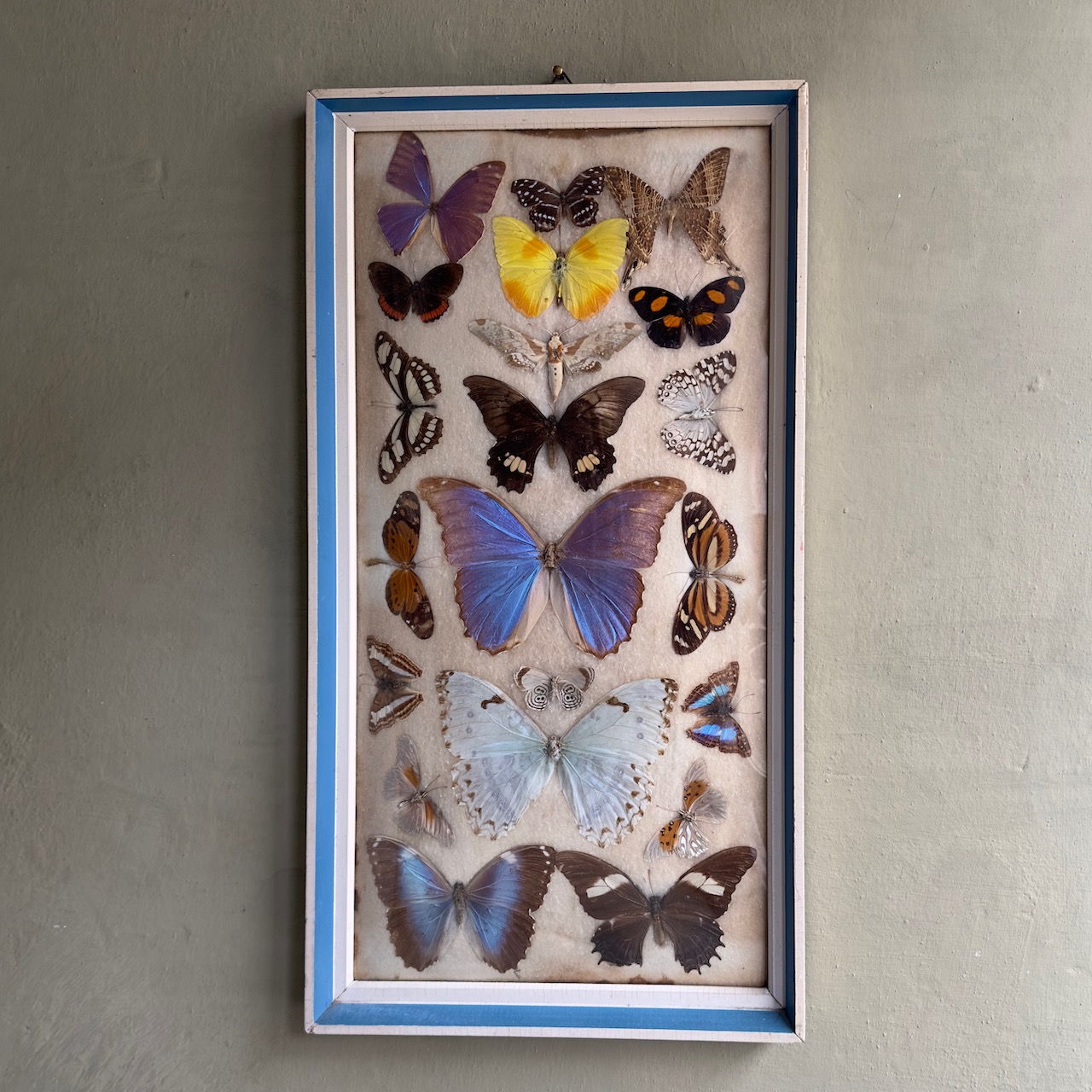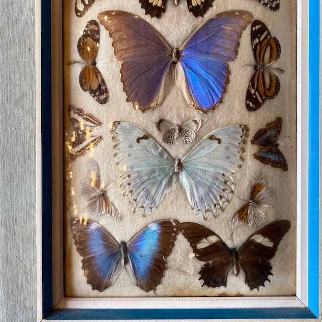 Collezione farfalle sotto teca bombata. Italia, 1950 circa
