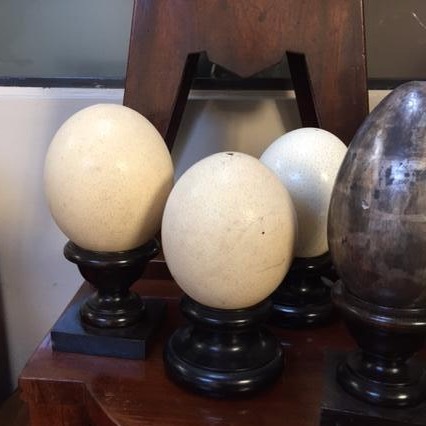 Due uova di struzzo su basi tornite ed ebanizzate. Italia, sec. XX