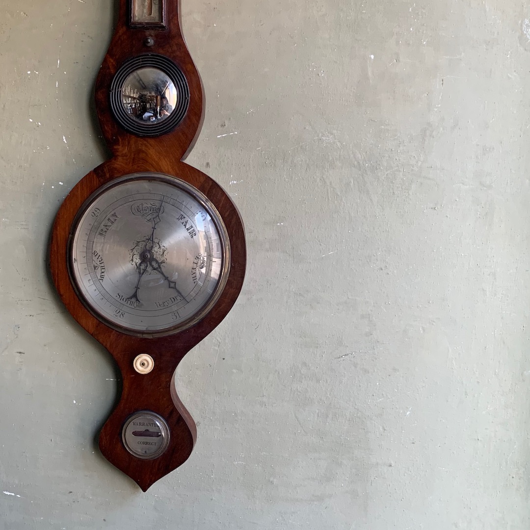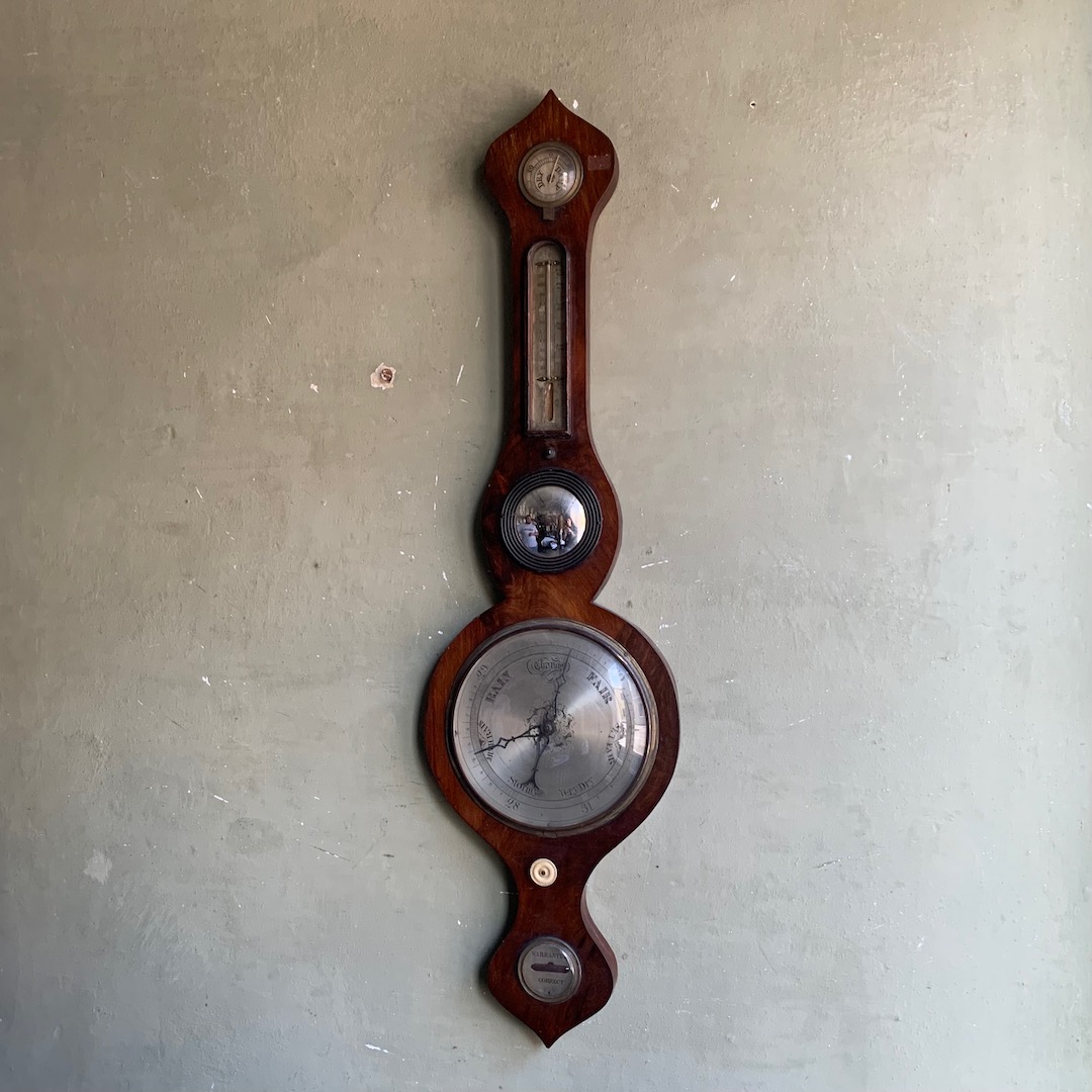 Grande barometro a ruota da parete in noce con quadrante inciso. Inghilterra, 1860 circa