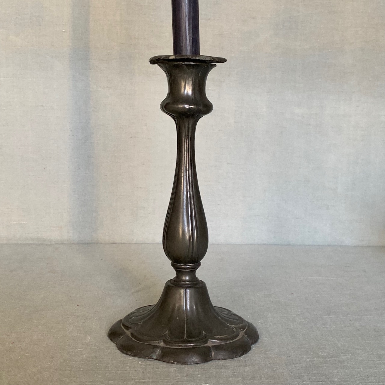 Candeliere in peltro. Italia sec. XIX