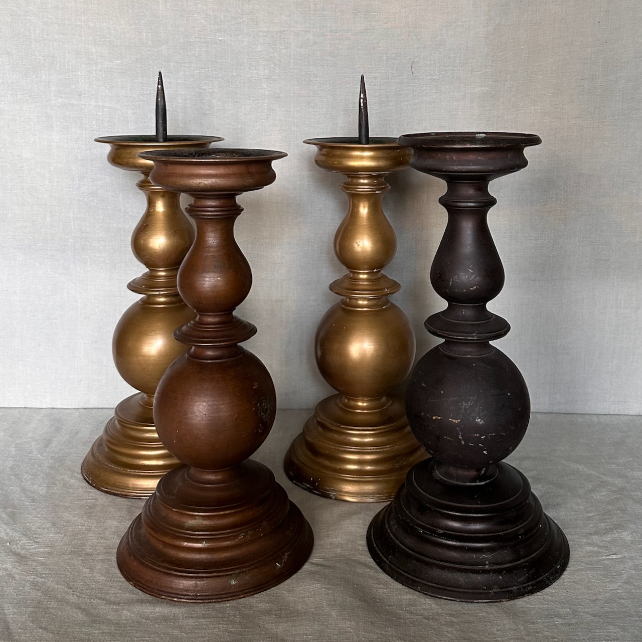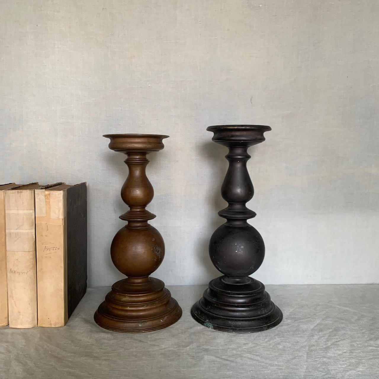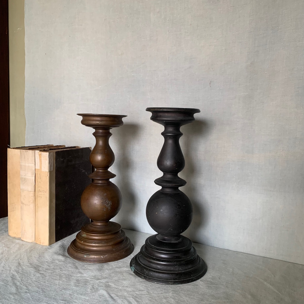 Coppia grandi torcere a balaustro, bronzo e bronzo patinato nero. Italia, sec. XIX
