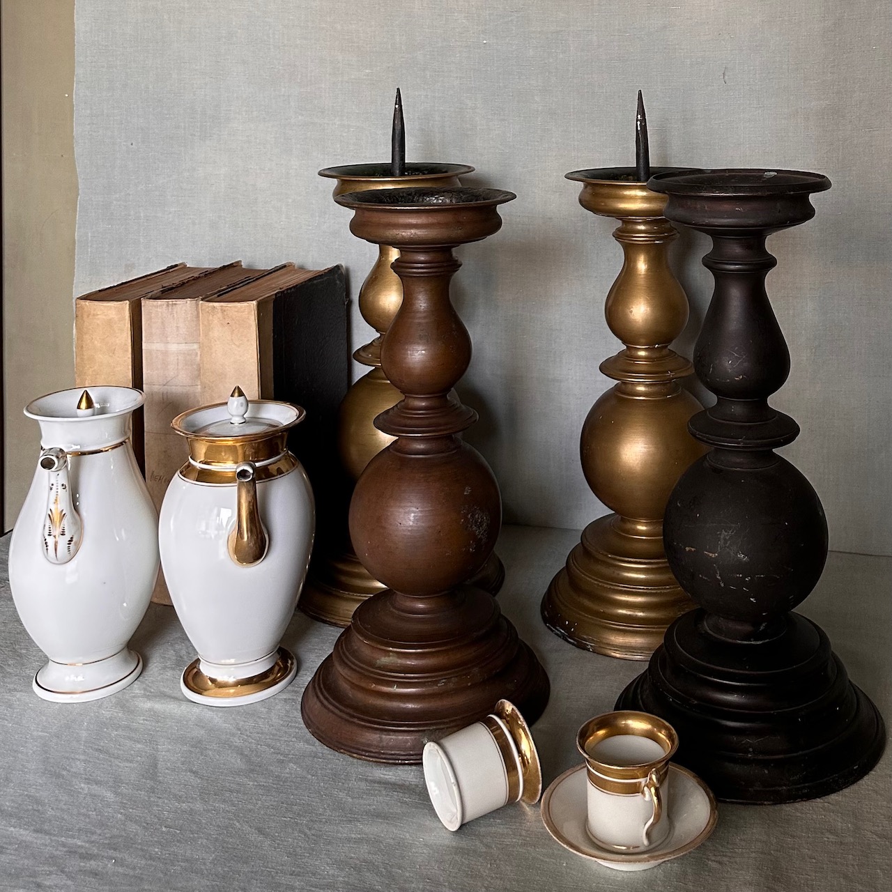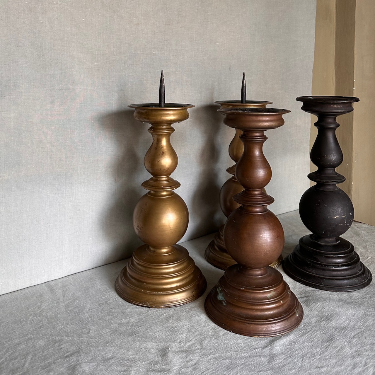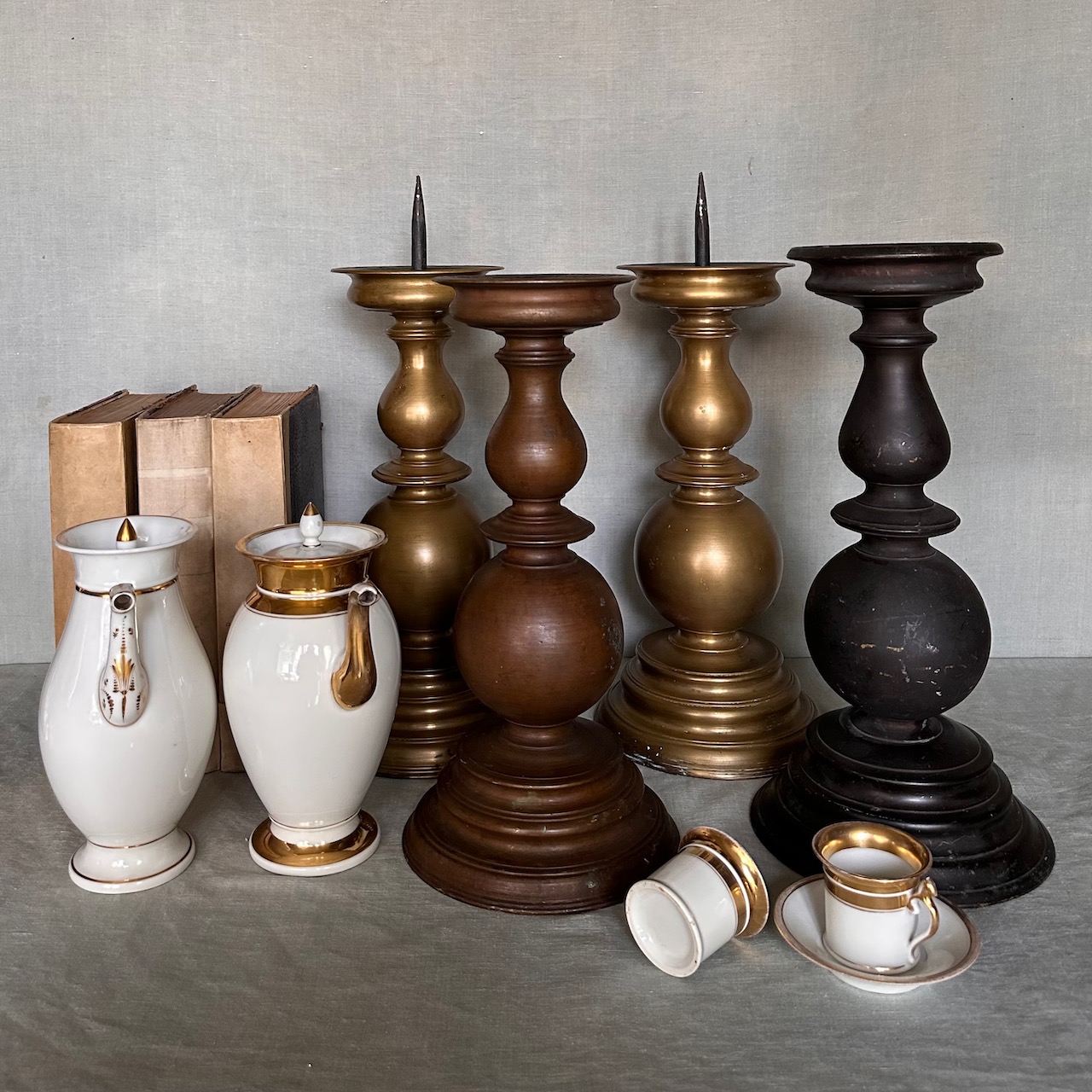 Coppia grandi torcere a balaustro, bronzo e bronzo patinato nero. Italia, sec. XIX