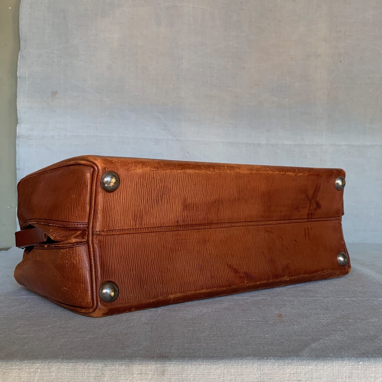 Borsa medico in pelle cognac, interno fodera verde. Italia, sec. XIX