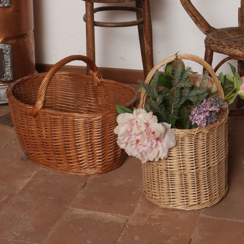 Un cesto e un paniere in vimini intrecciato. Italia, sec. XX