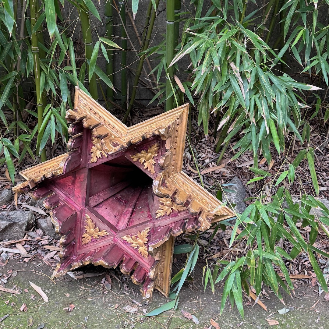 Corona baldacchino, stella a sei punte in legno intagliato e dorato. Toscana, fine sec. XIX