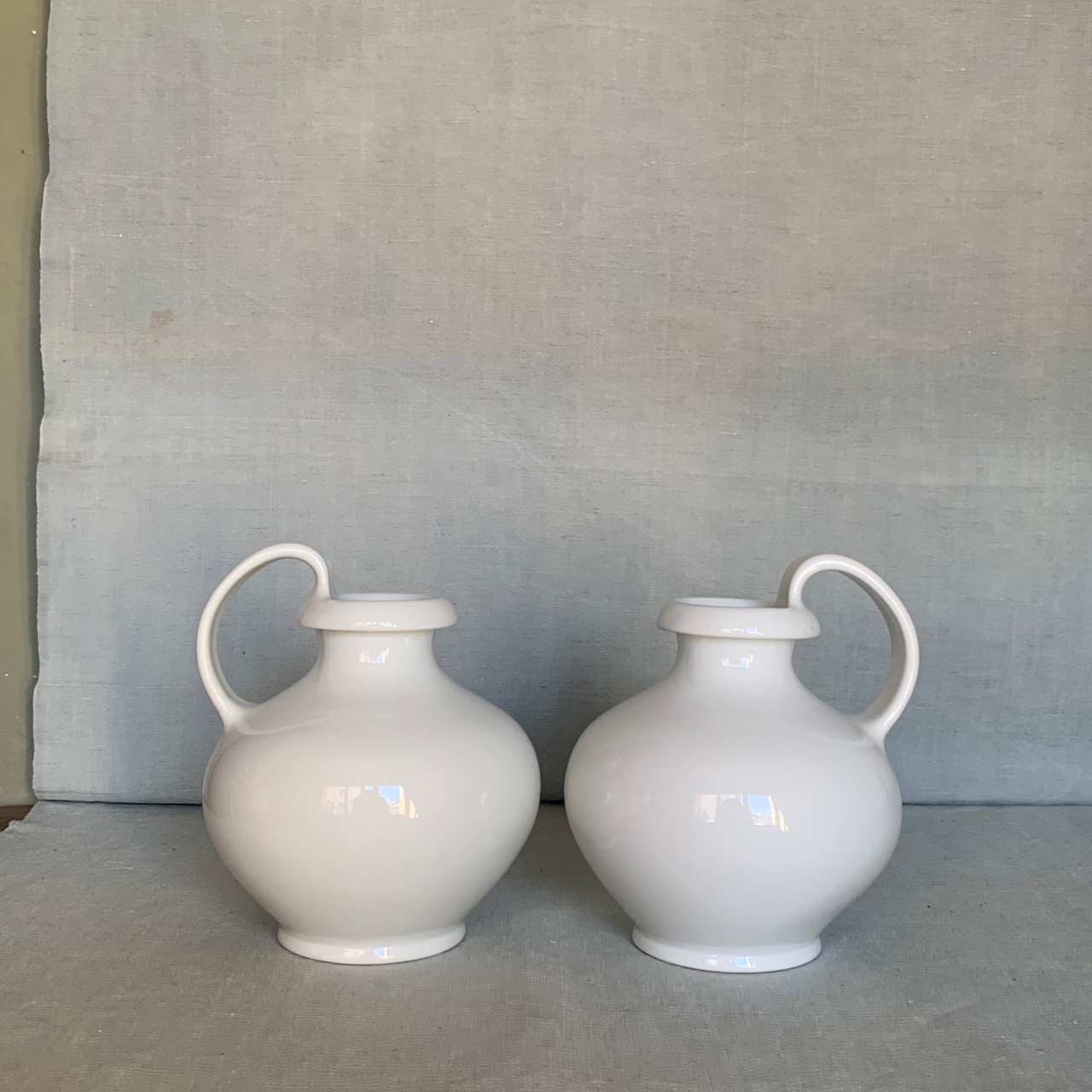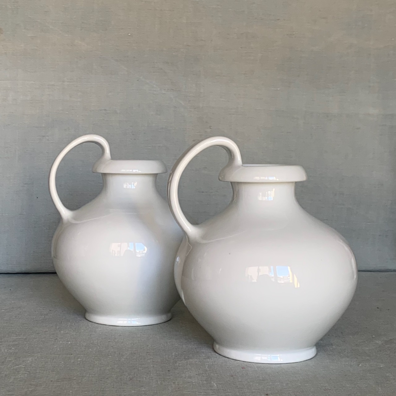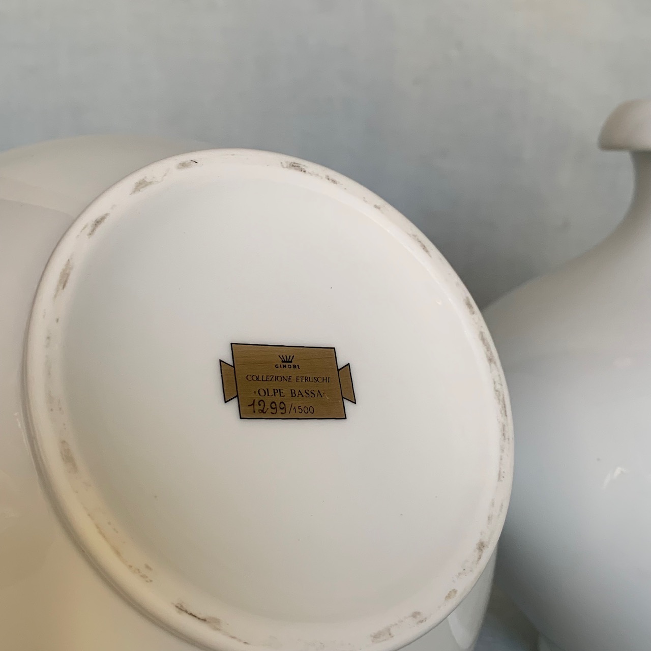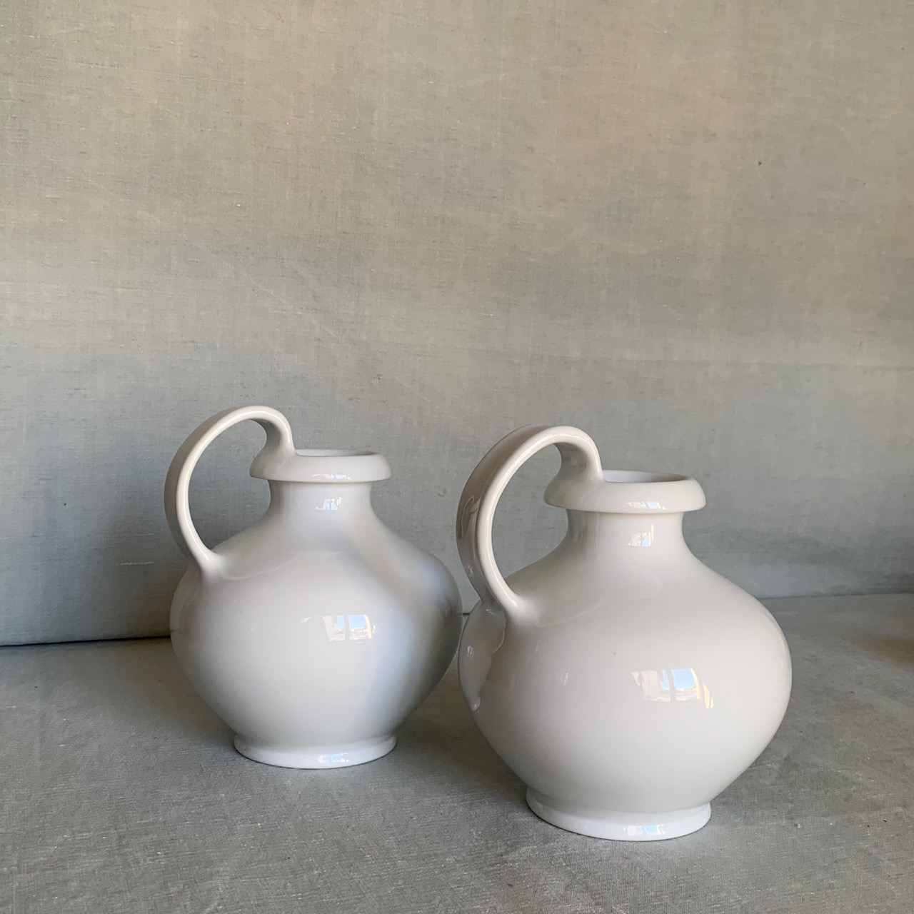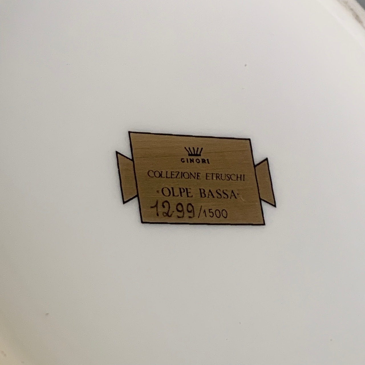 Coppia brocche Olpa Bassa Collezione Etruschi in porcellana bianca Ginori. Sesto Fiorentino, Italia sec. XX