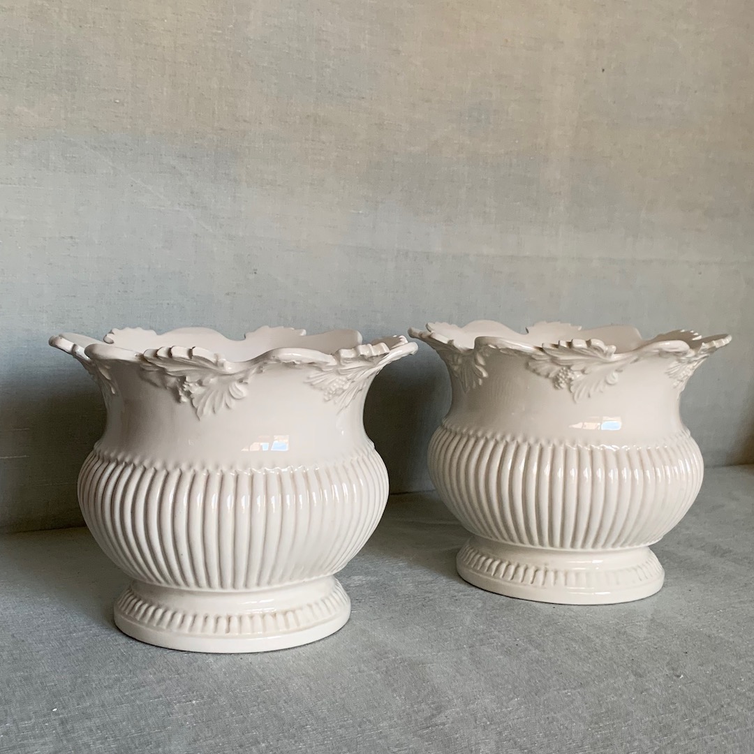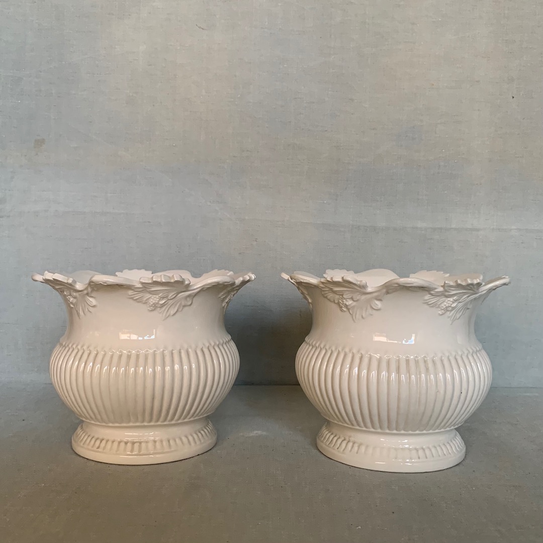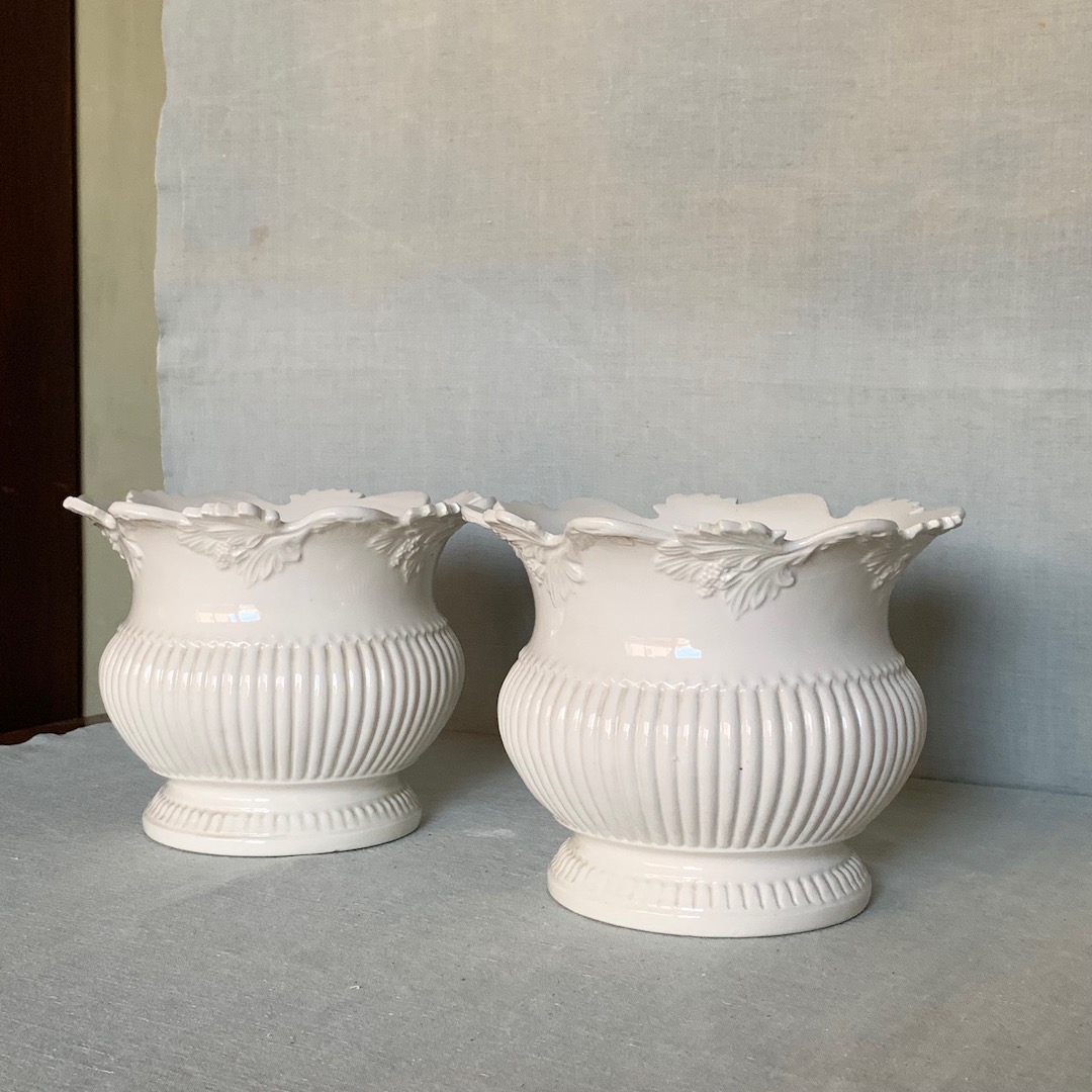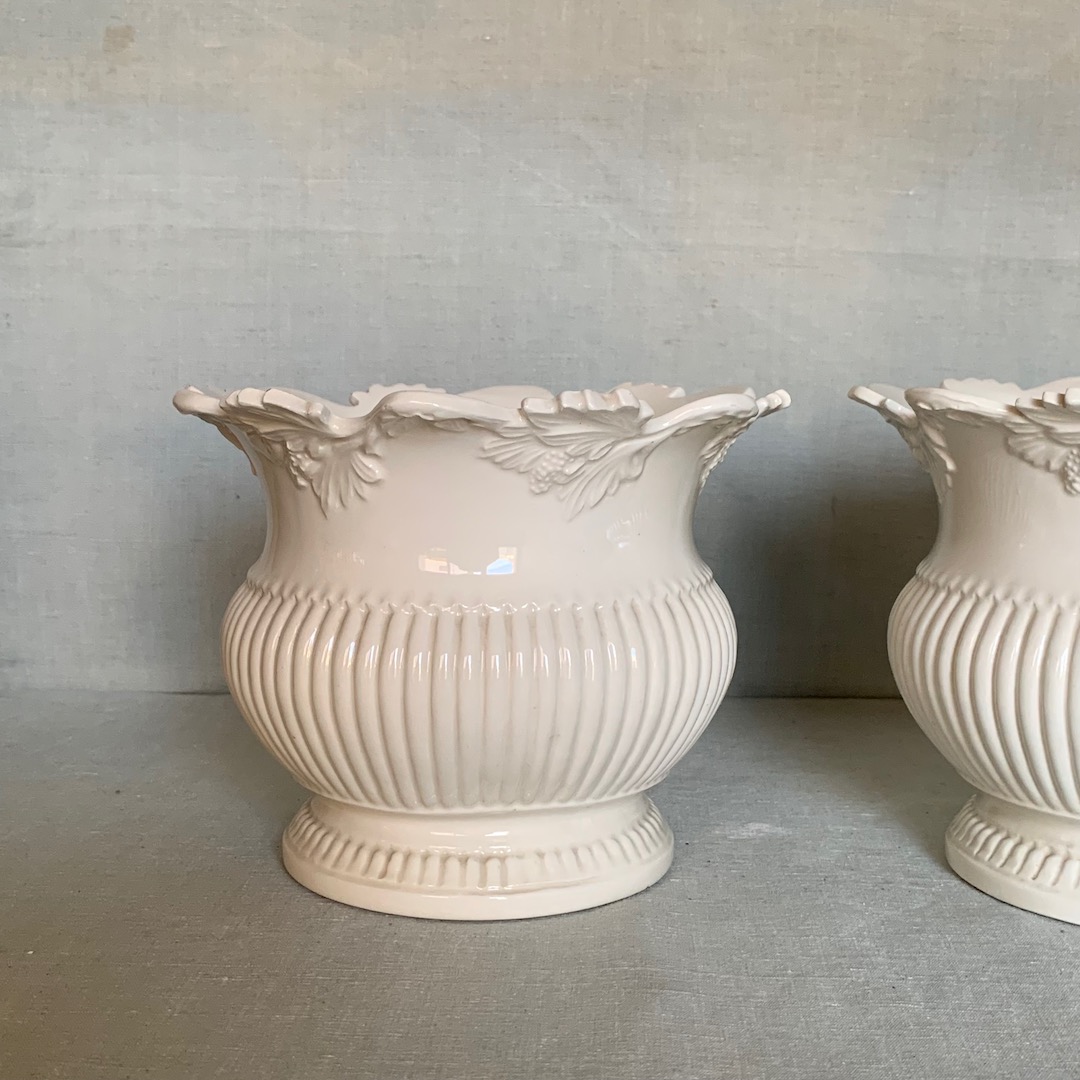 Coppia di Portavasi in maiolica bianco burro. Manifattura La Farnesiana, Parma 1950 circa