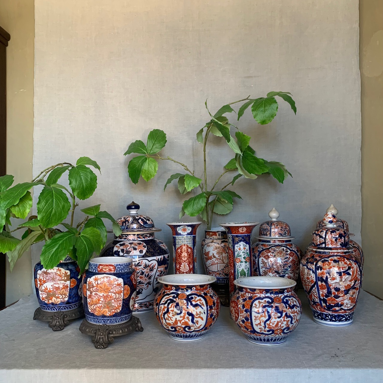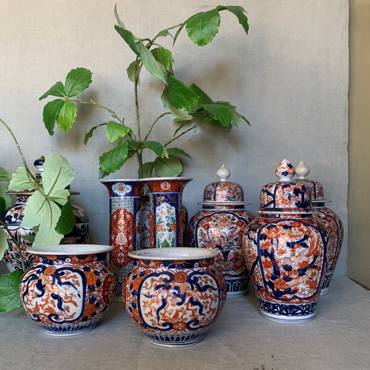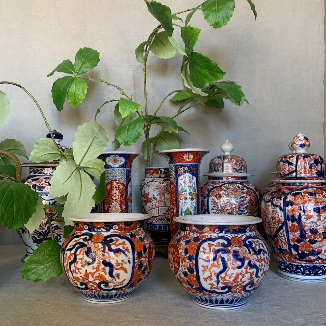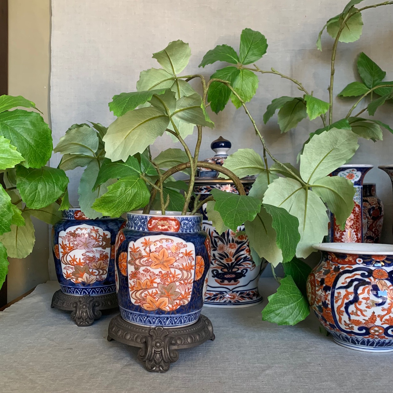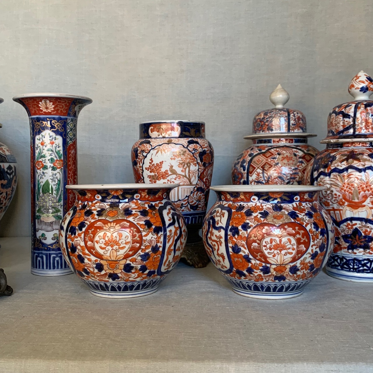 Allestimento cachepot e potiche Imari. Giappone, sec. XIX