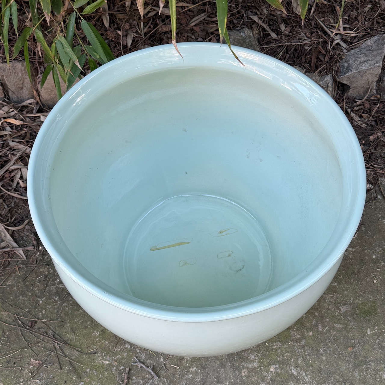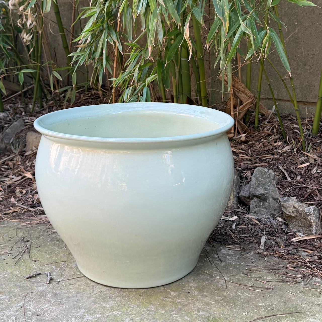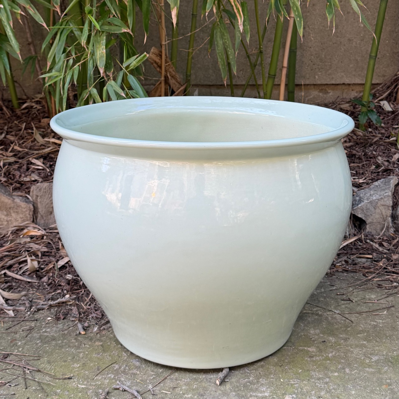 Cachepot in porcellana smaltata verde acqua. Italia, sec. XX