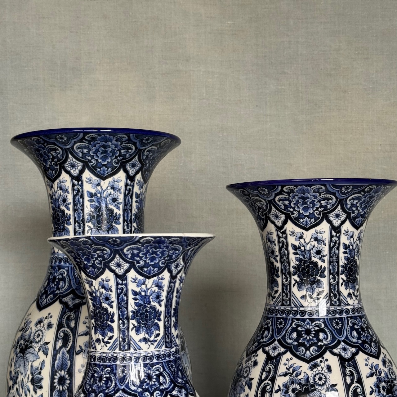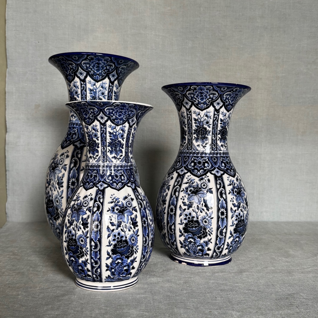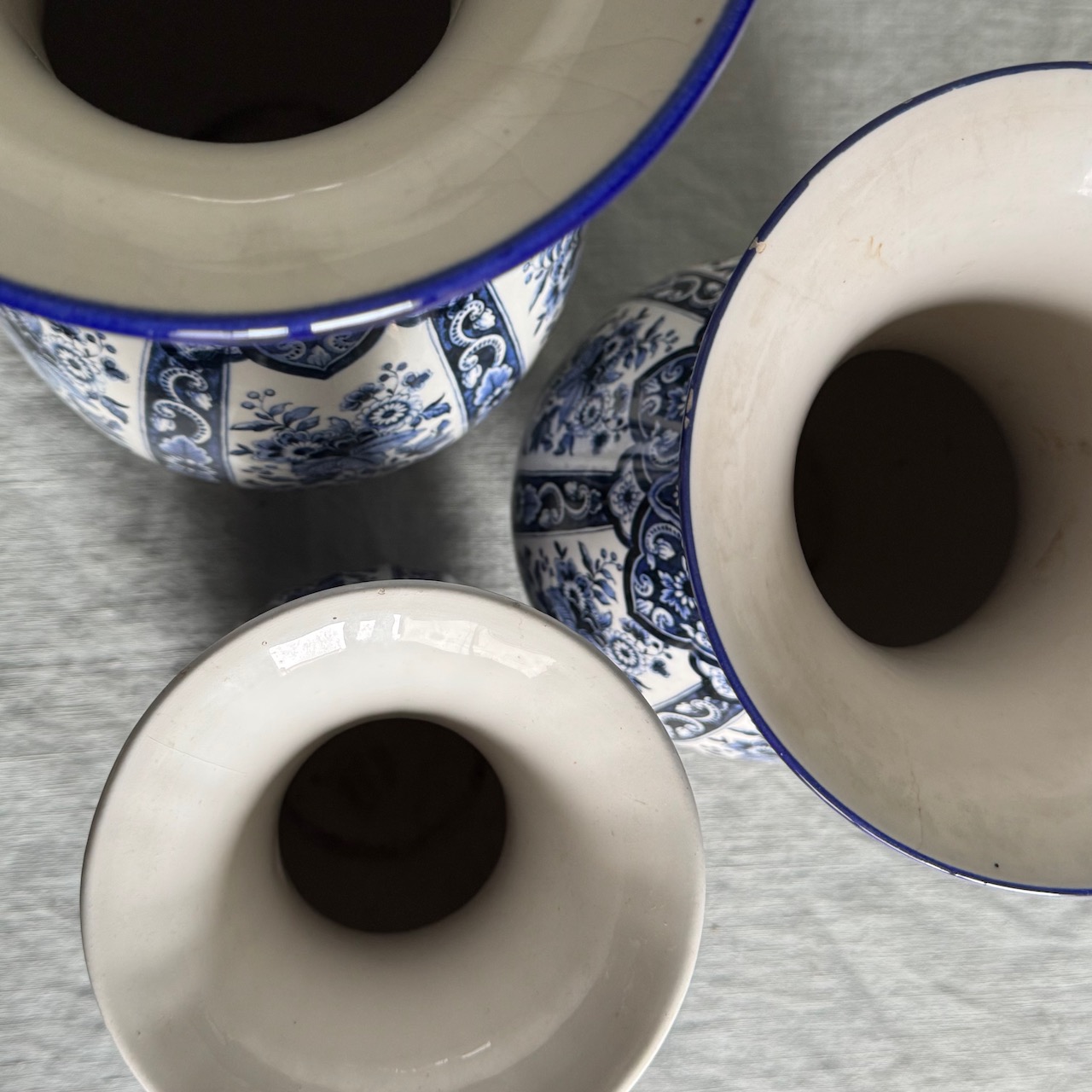 Collezione vasi porcellana bianco blu cobalto Delft, motivo floreale chinoiserie. Olanda, sec. XX