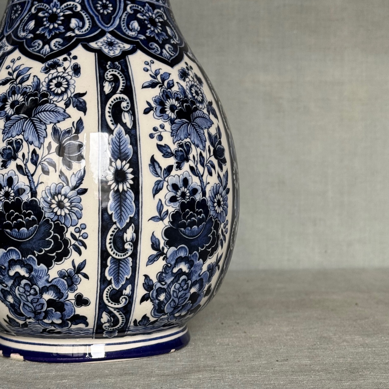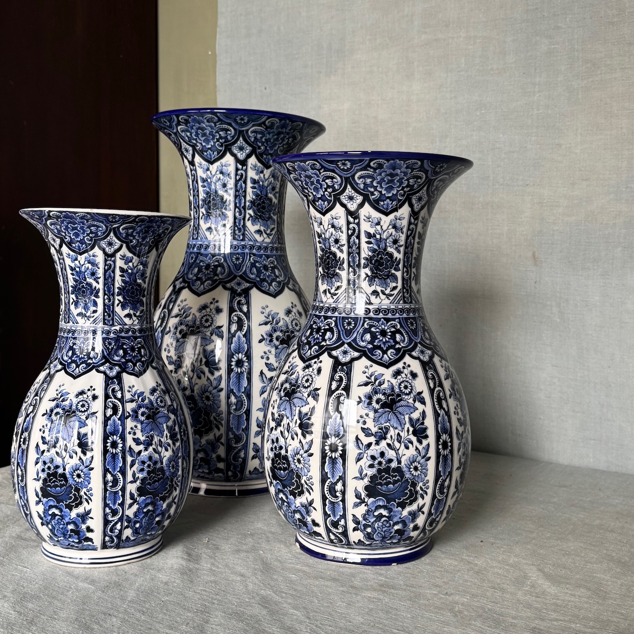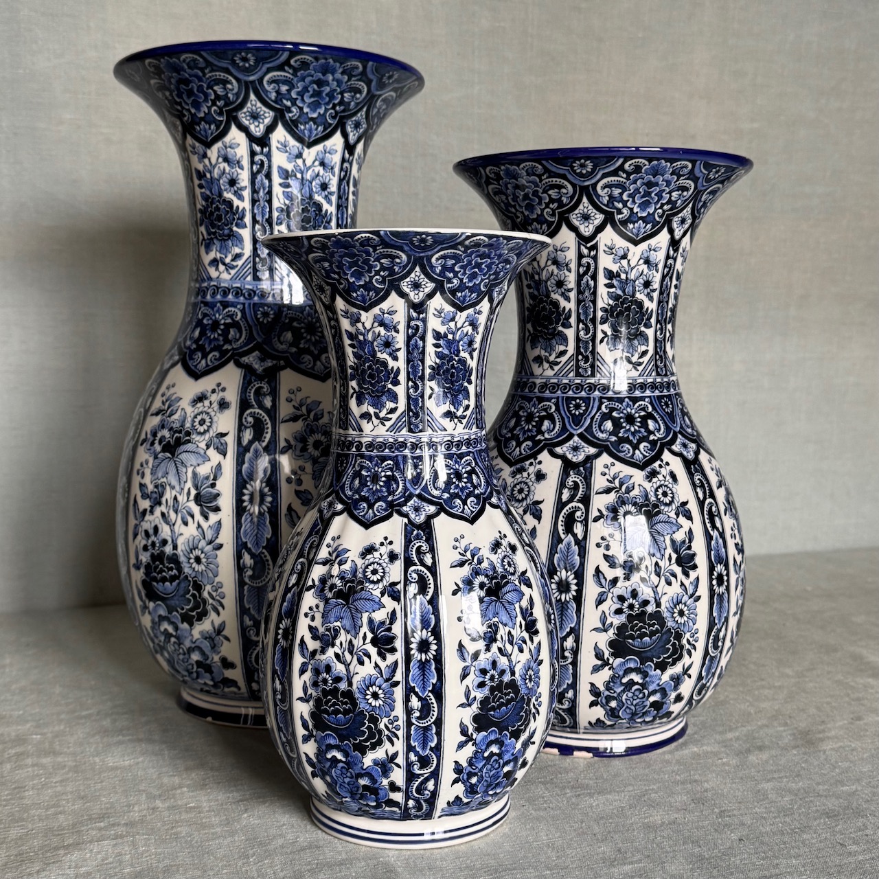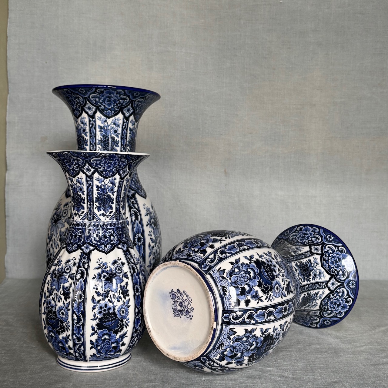 Collezione vasi porcellana bianco blu cobalto Delft, motivo floreale chinoiserie. Olanda, sec. XX