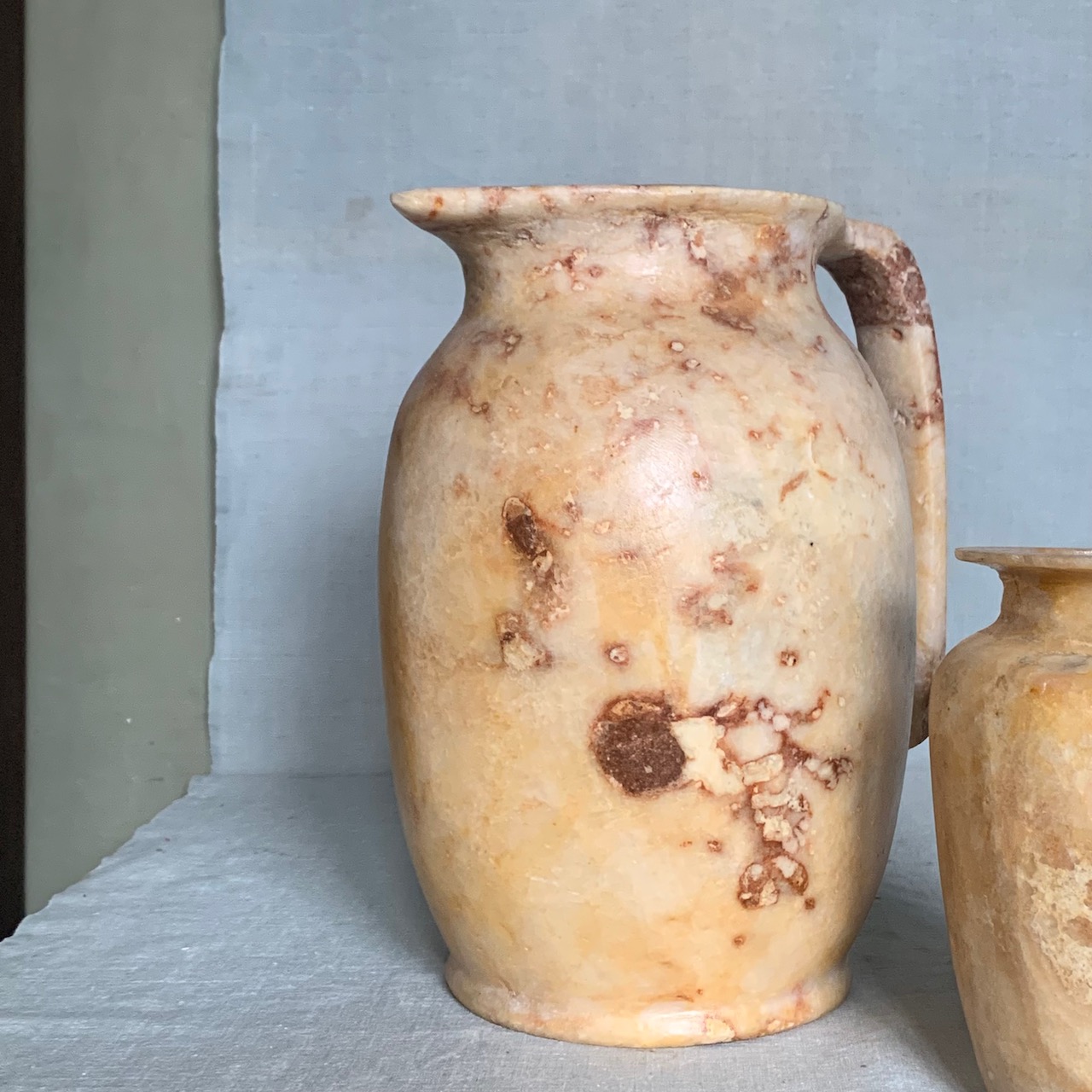 Grande brocca egizia scolpita da un unico pezzo in alabastro traslucido. Egitto, sec. XX