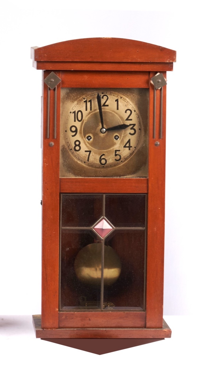 Orologio da parete, cassa in legno e mostra in metallo. Italia, sec. XX