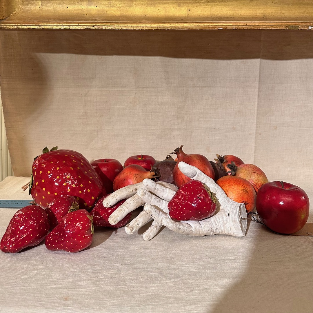 Triunfo frutta rossa, diciassette frutti in cartapesta. Italia, sec. XX
