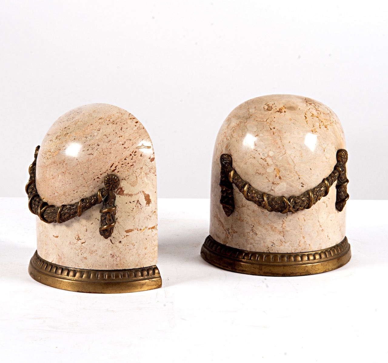 Coppia fermalibri marmo e bronzo dorato. Italia, sec. XX