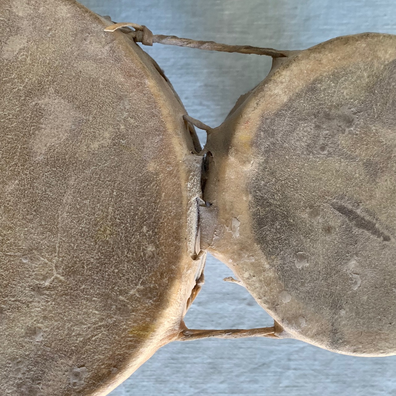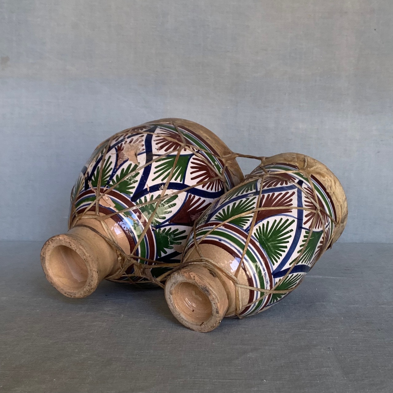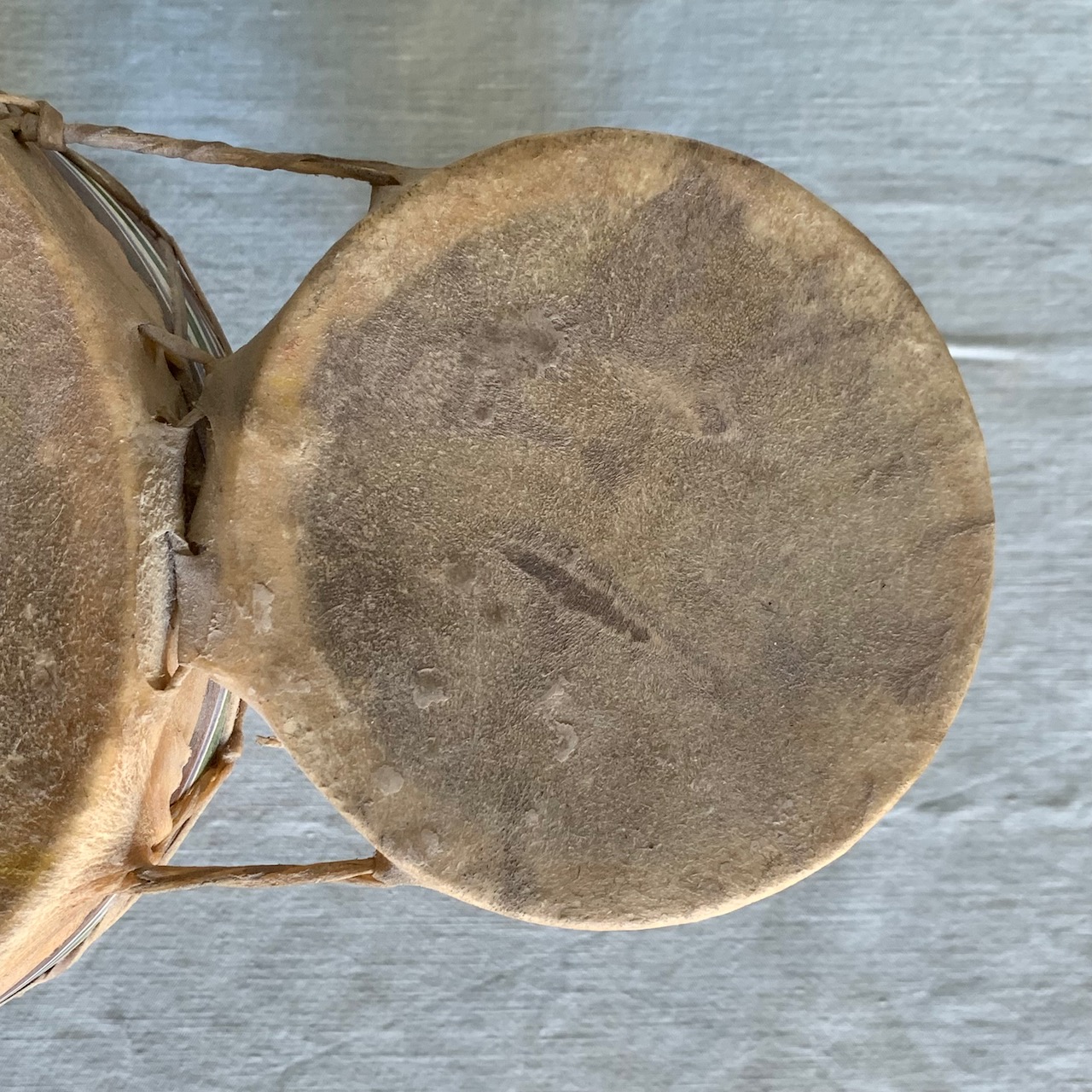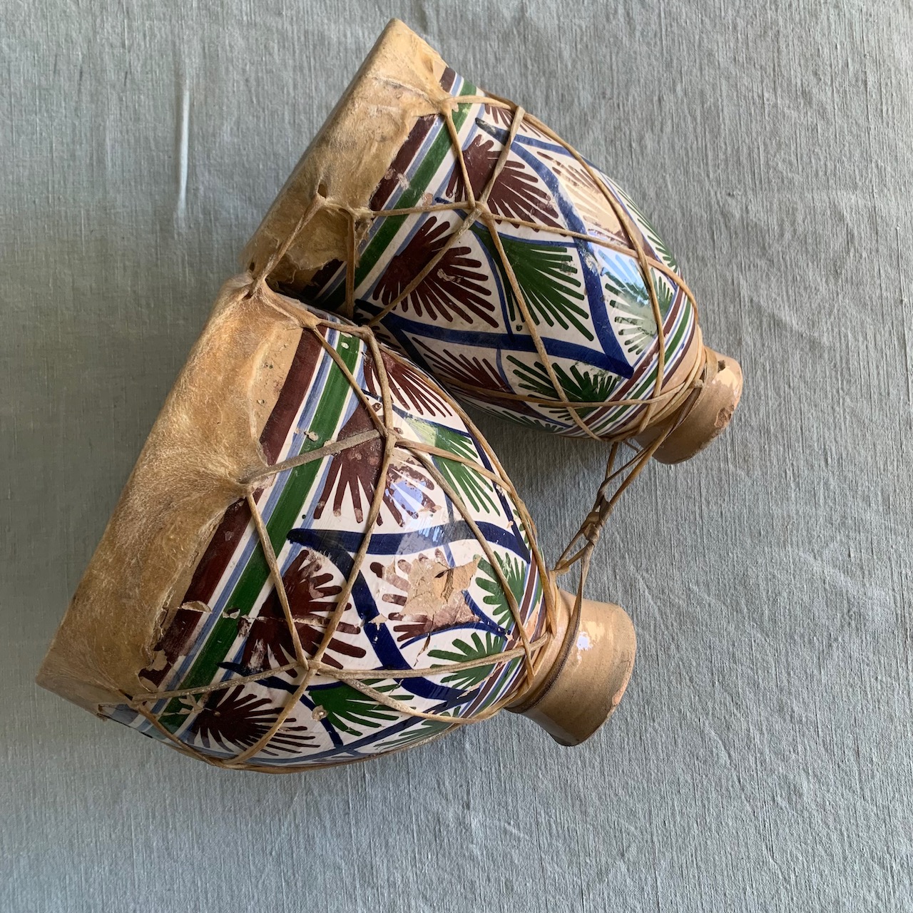 Bongo Marocchino fatto a mano, in ceramica policroma e pelle naturale. Marocco, sec. XX