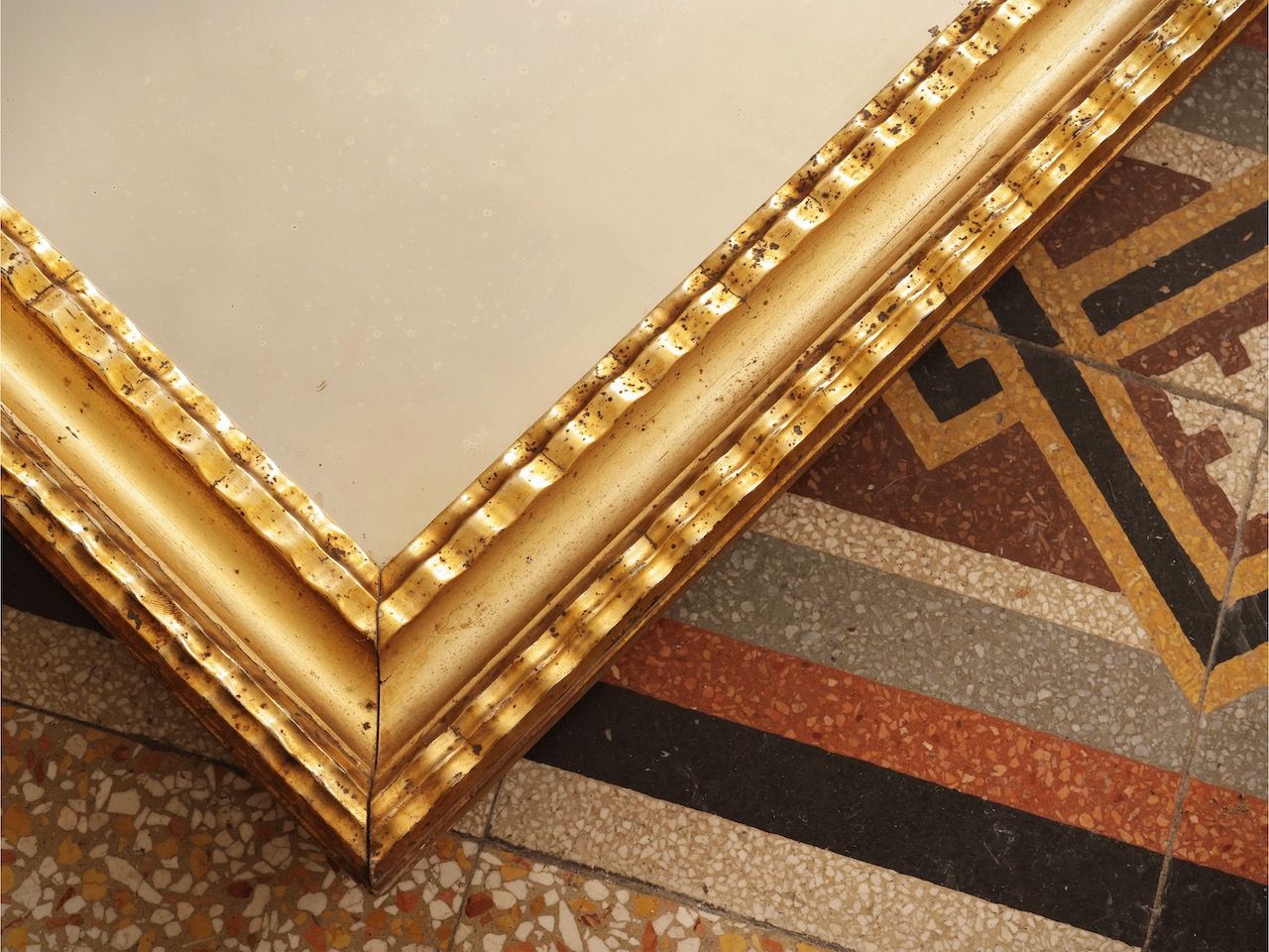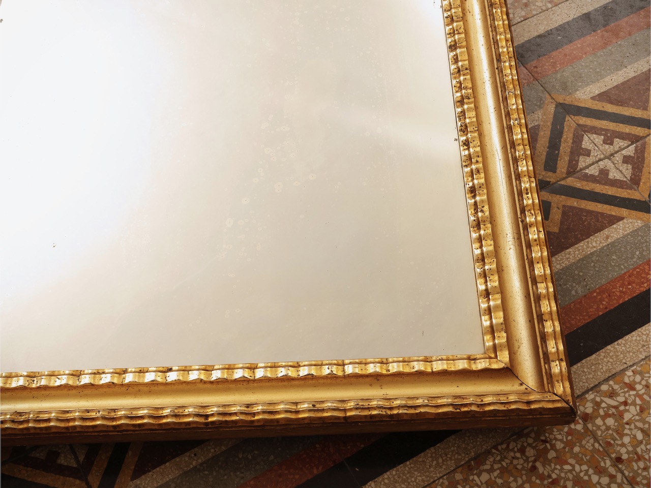 Specchiera rettangolare con cornice in legno e pastiglia dorata. Italia, sec. XX