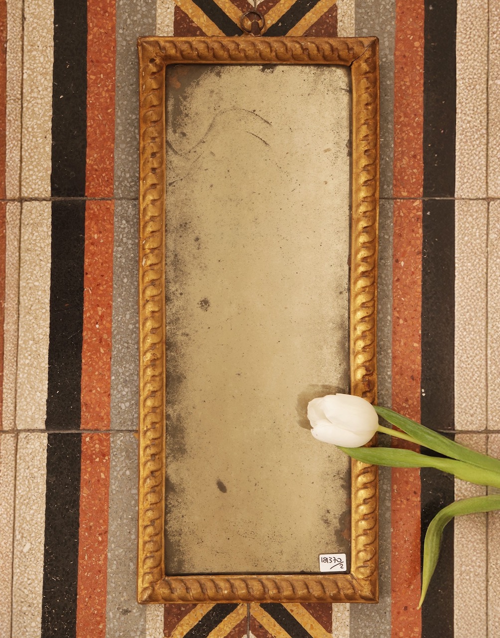 Coppia piccole specchiere in legno intagliato dorato, cornice a torcono. Italia, sec. XIX