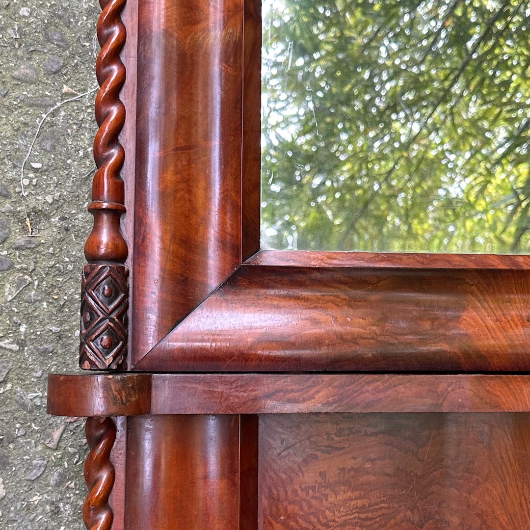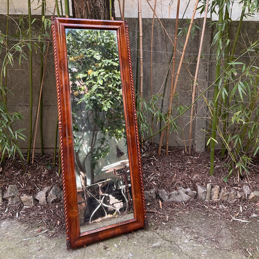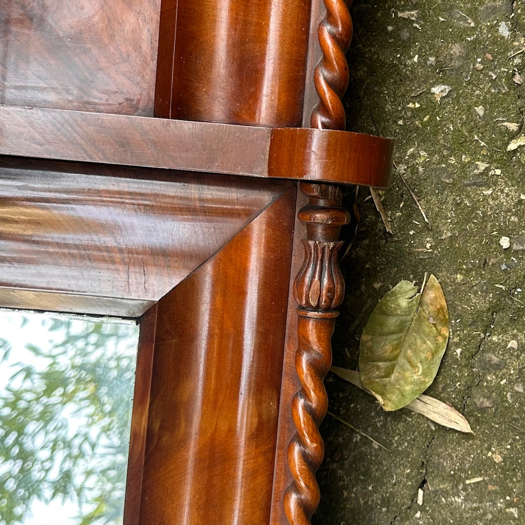 Specchiera tardo Impero in piuma di mogano con laterali torniti. Livorno, prima metà sec. XIX
