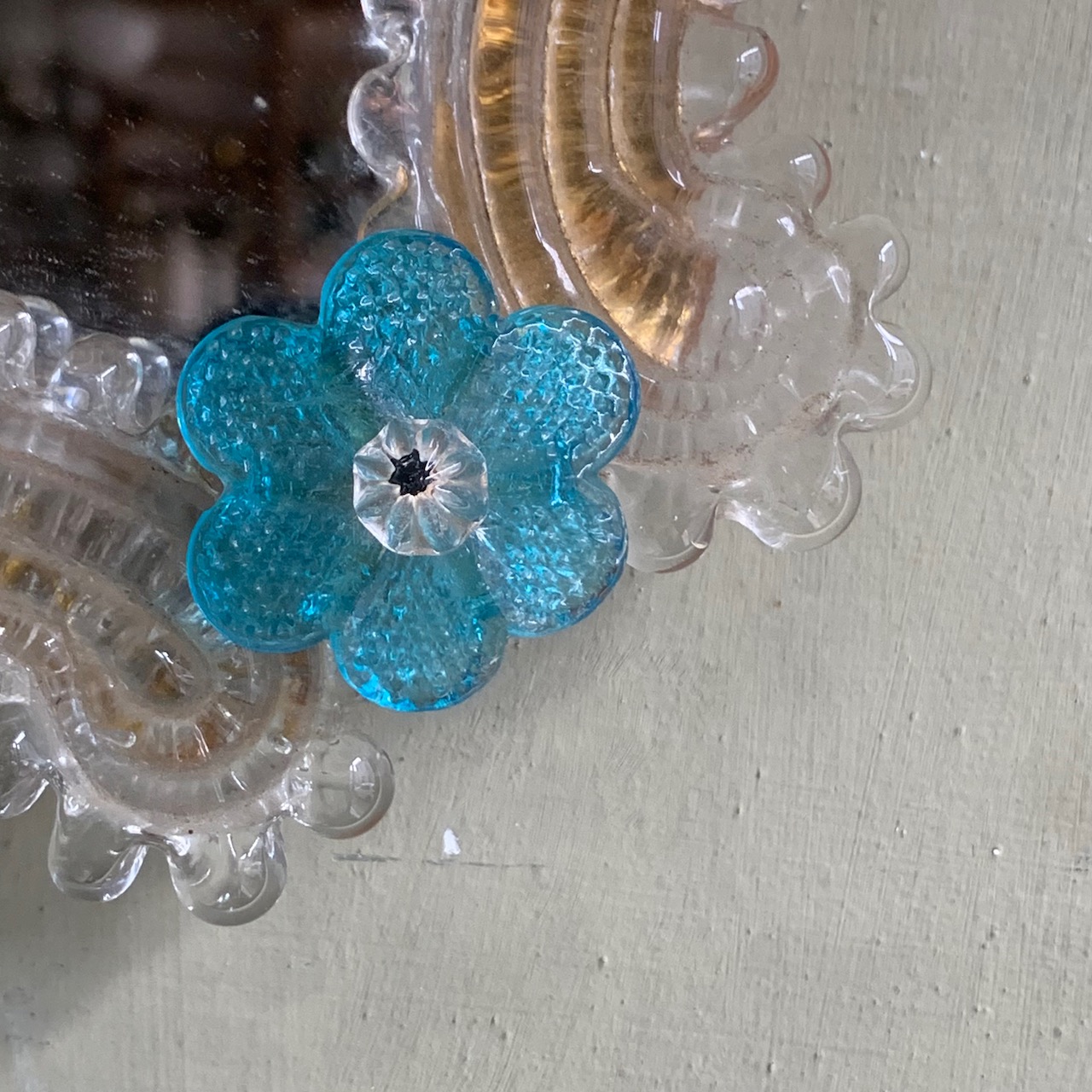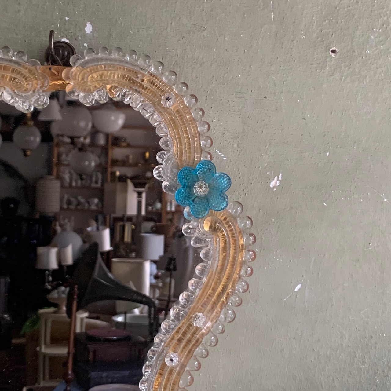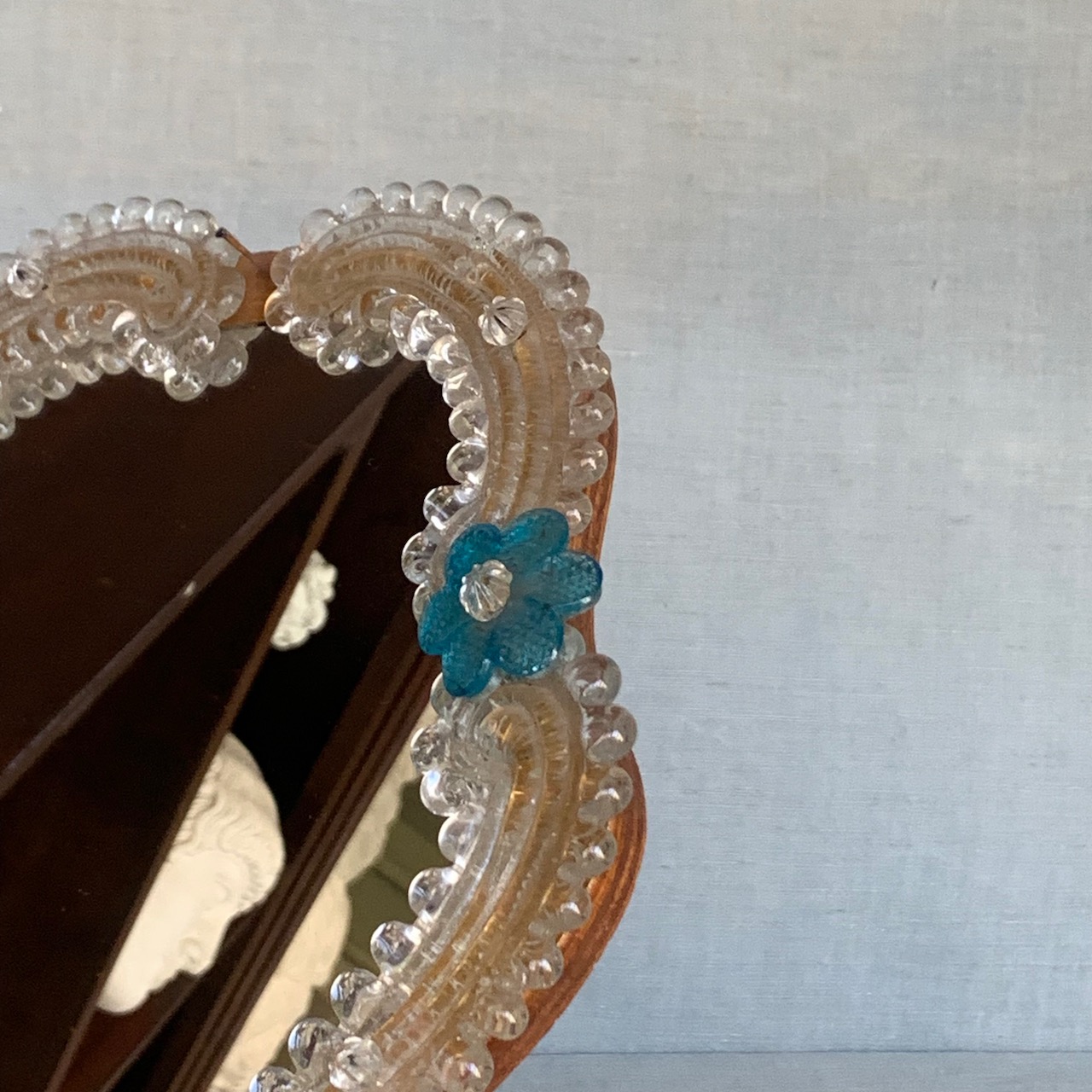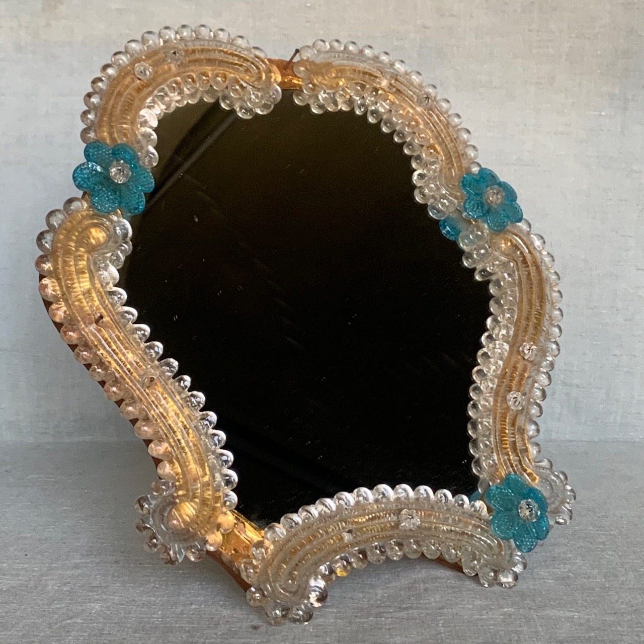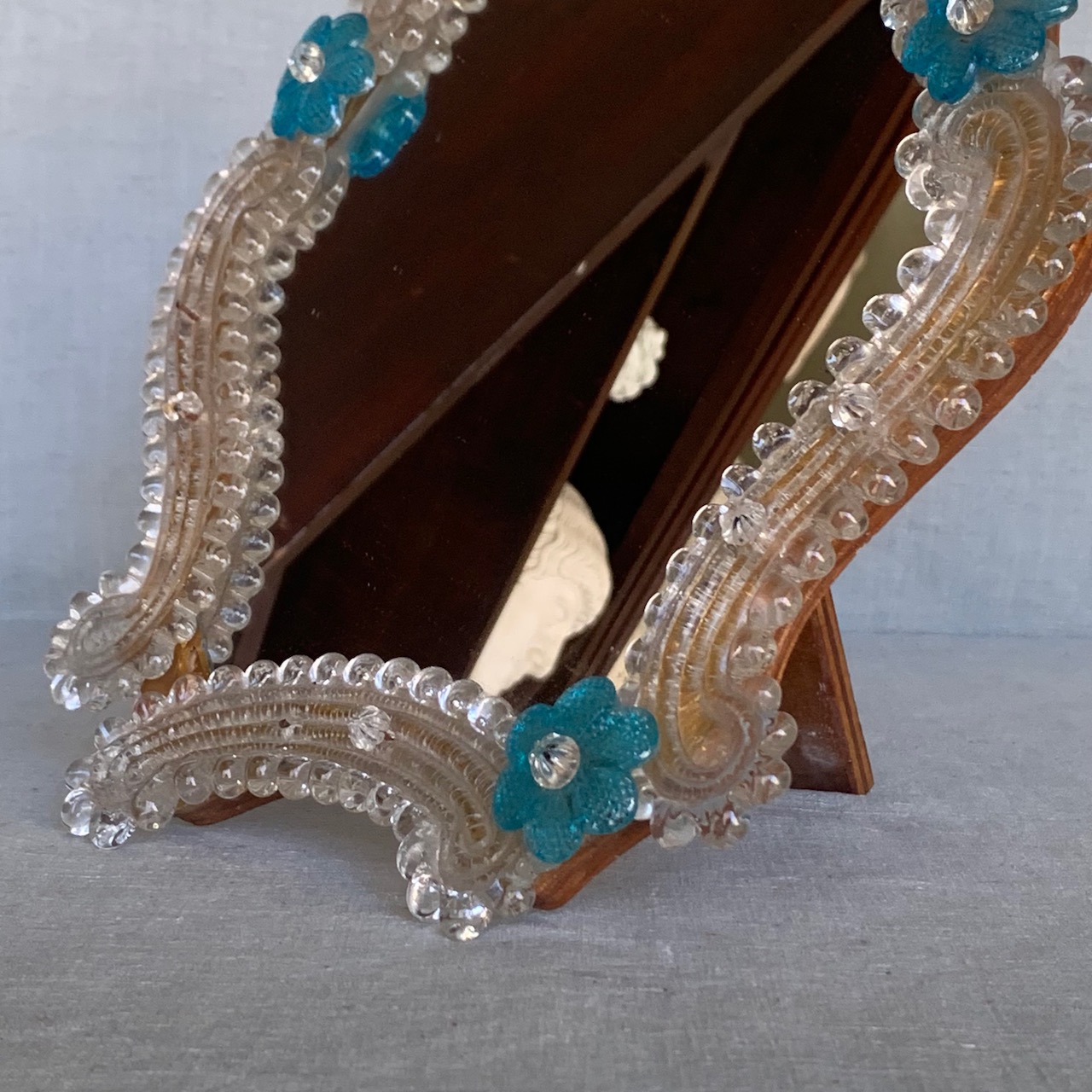 Specchio da tavolo in vetro di Murano trasparente e azzurro. Venezia, sec. XX