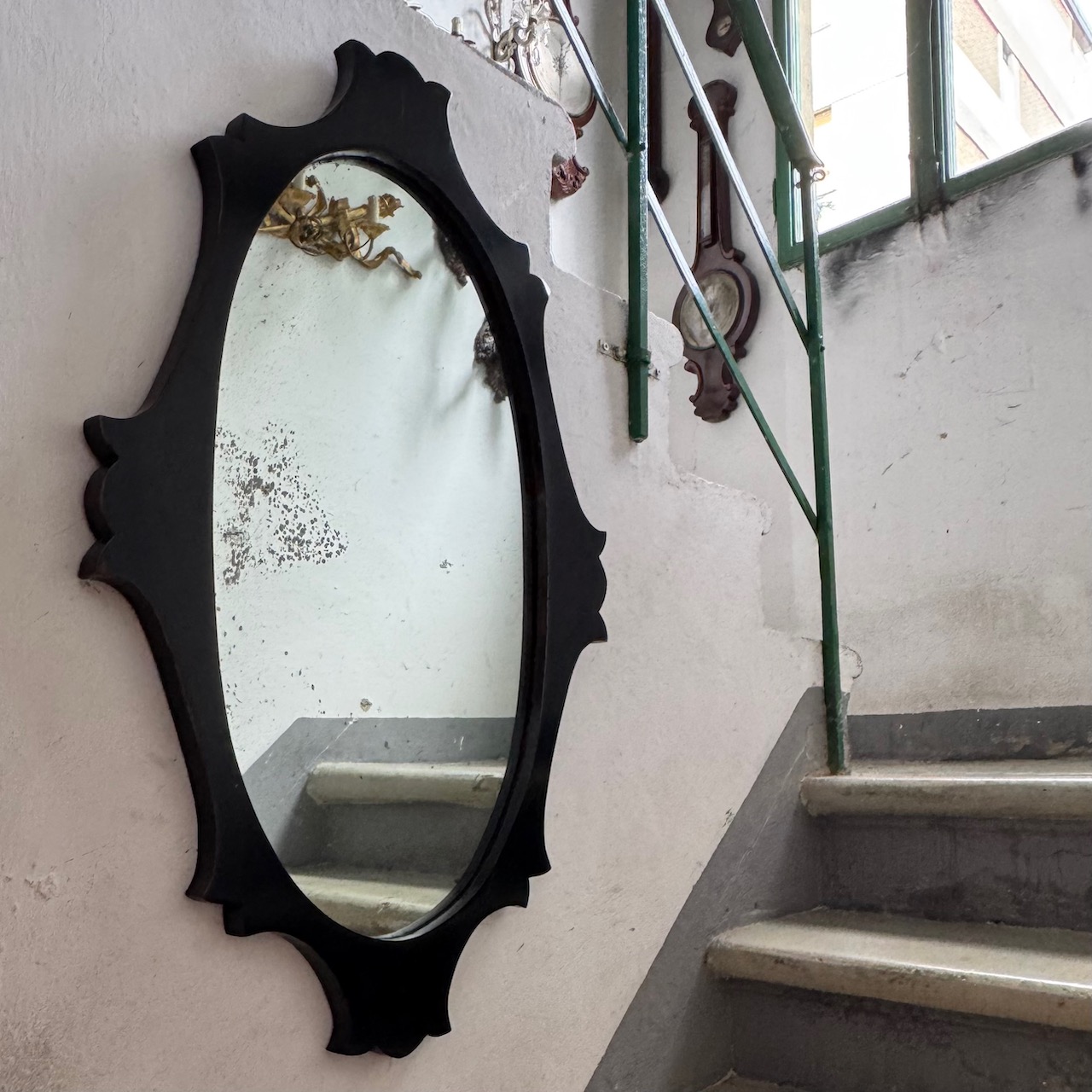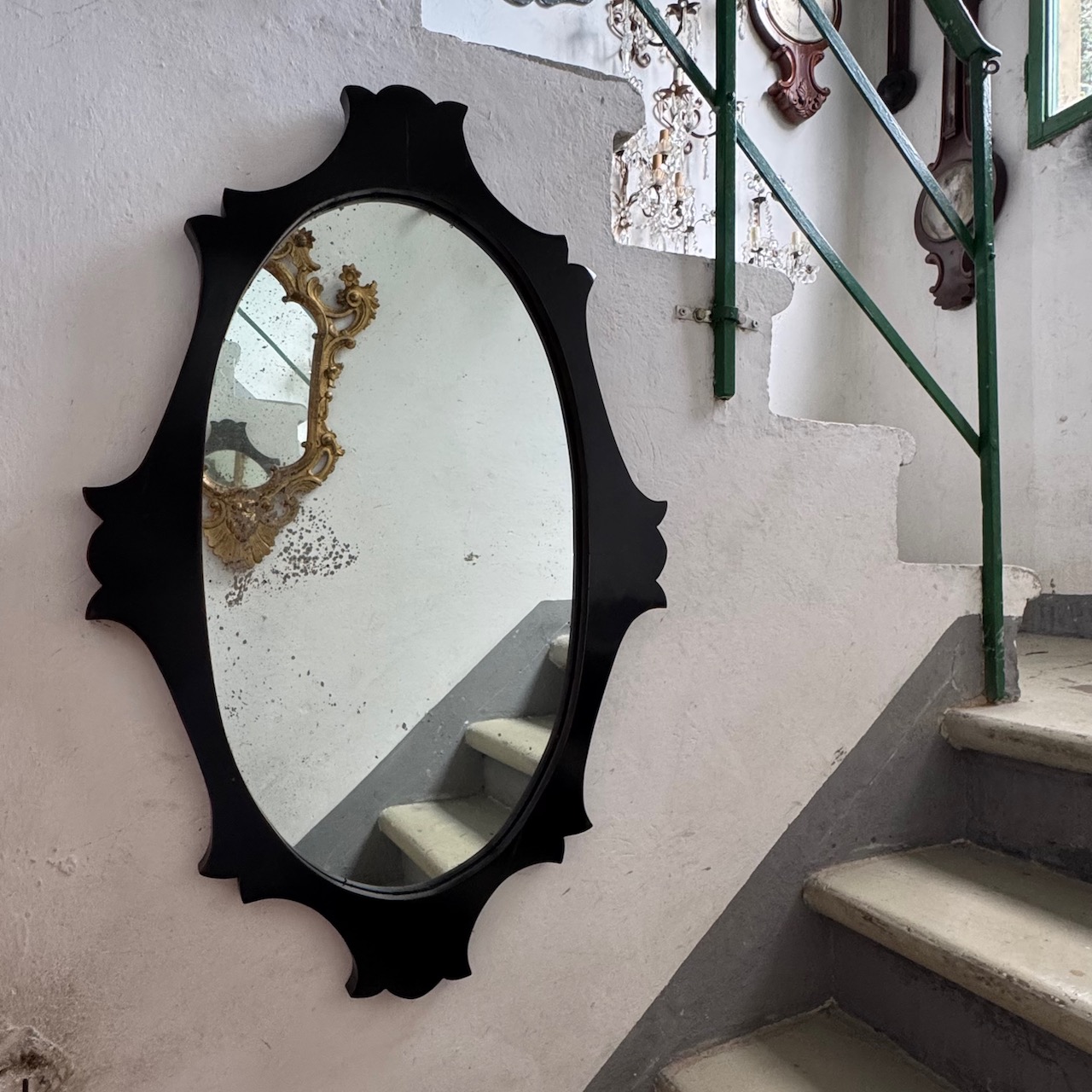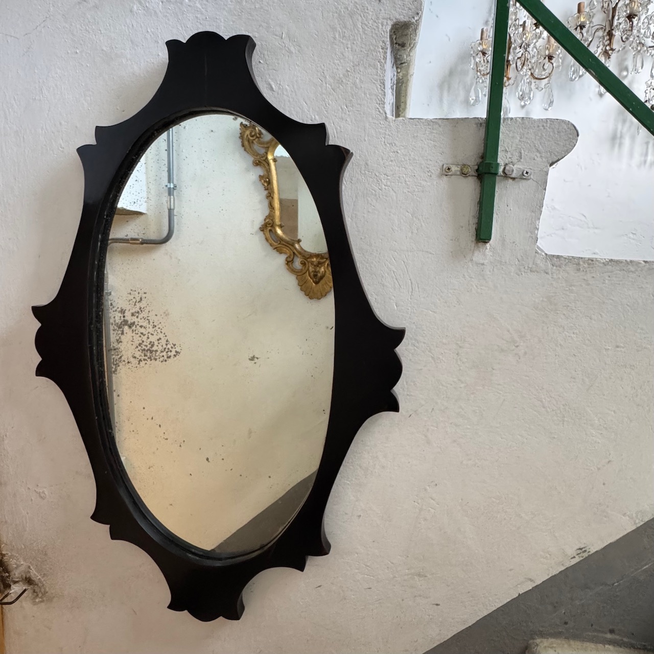 Specchiera a mandorla in noce ebanizzato. Toscana 1930 circa