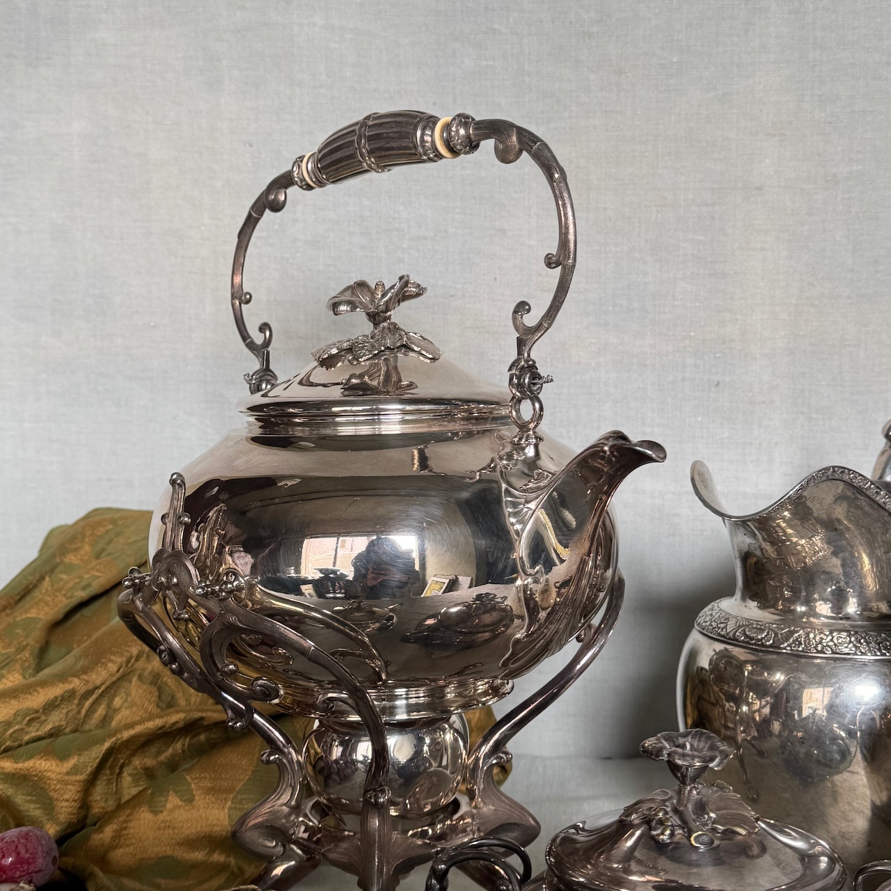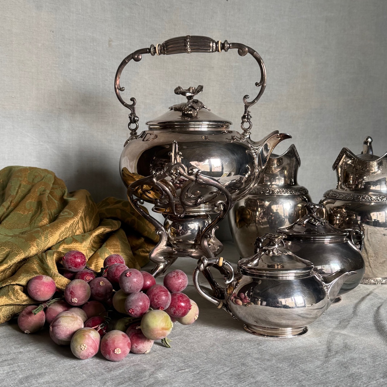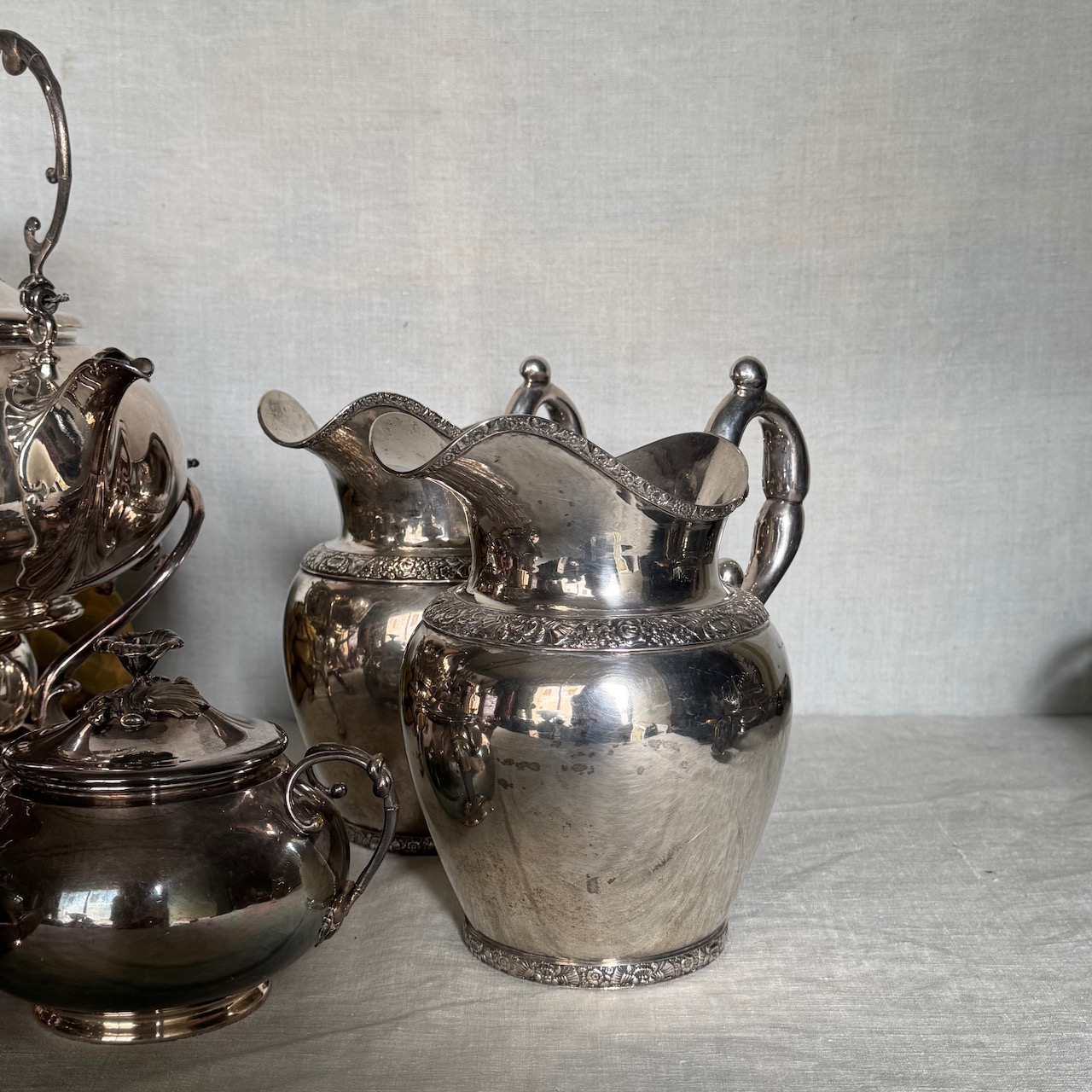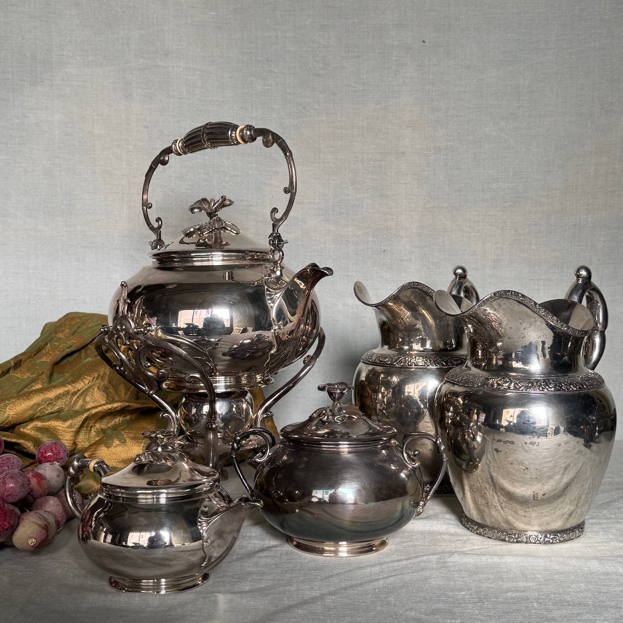 Accessori tavola argento, due brocche, un samovar, un a zuccheriera e una lattiera. Italia, sec. XIX