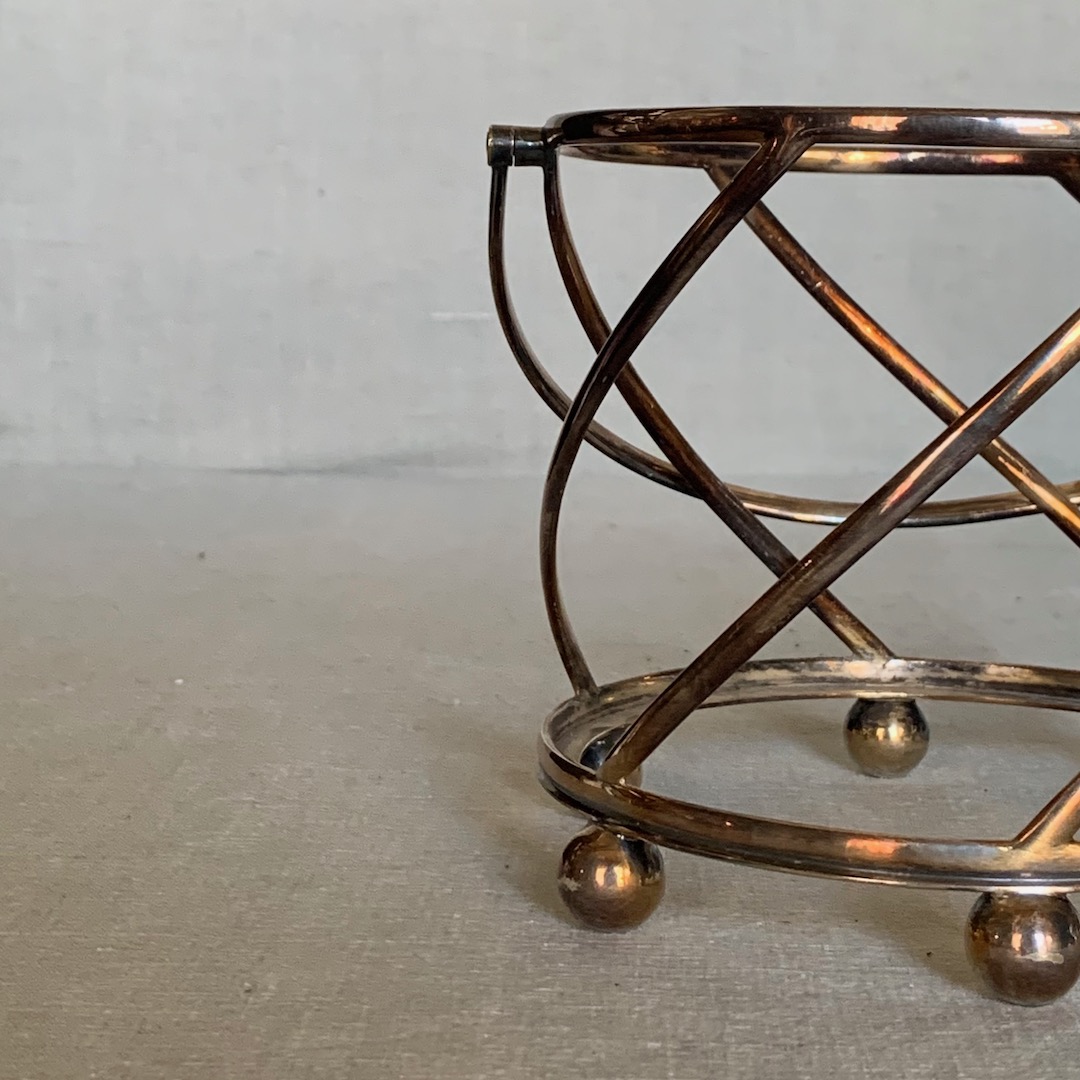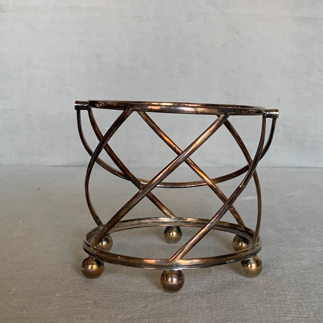 Cestino per secchiello ghiaccio in argento su rame, a maglia intrecciata con piedini a sfera. Italia, sec. XX