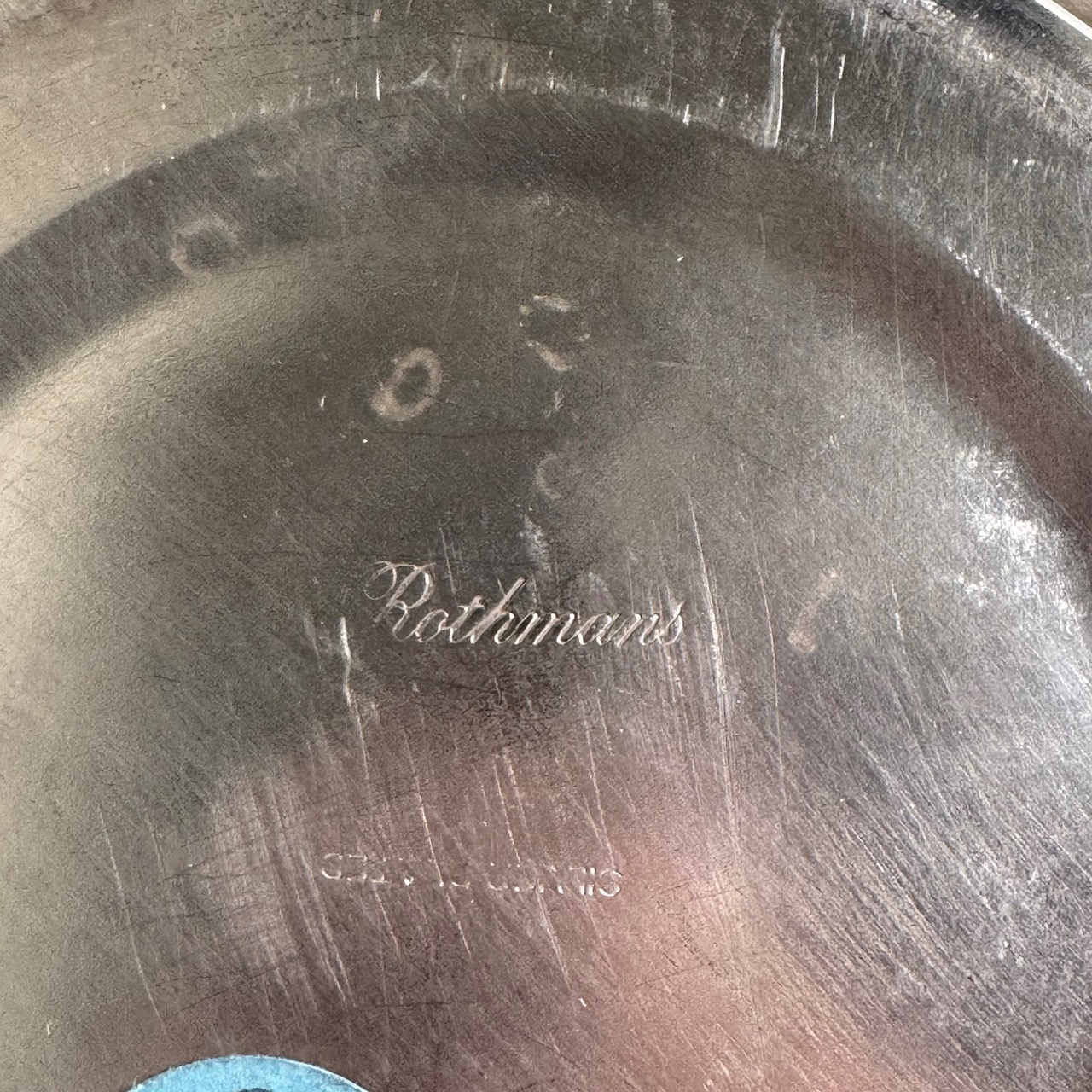 Coppia di secchielli da champagne argento su rame con doppia presa ad anello. Rothmans. Italia, inizio sec. XX