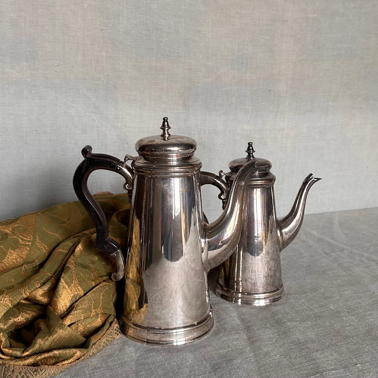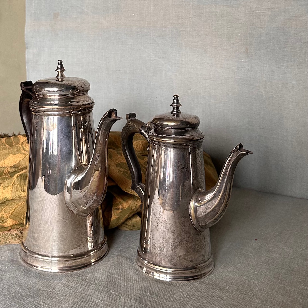 Due caffettiere argento su rame, manico in legno ebanizzato. Italia, sec. XIX