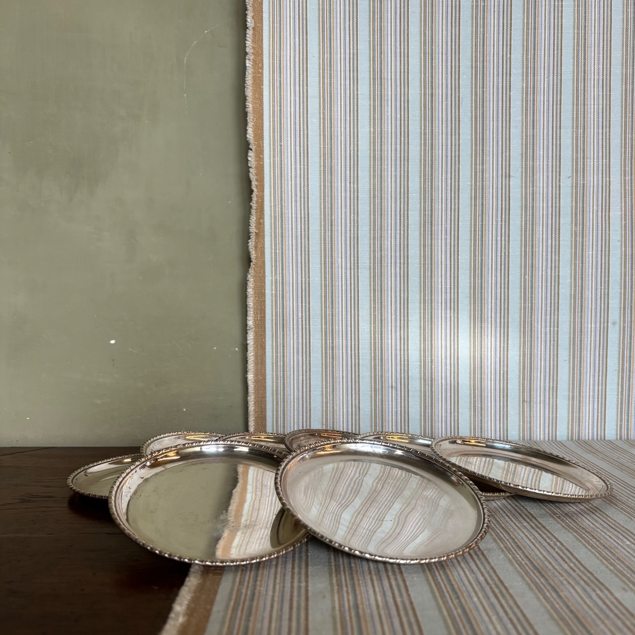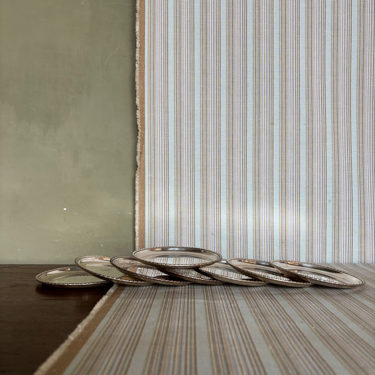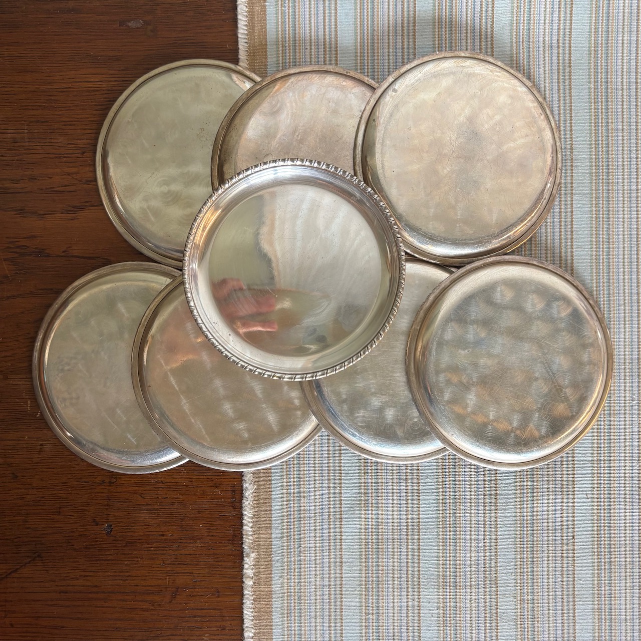Otto piccoli piatti pane argento su rame, profilo cordonetto San Marco. Italia, sec. XIX