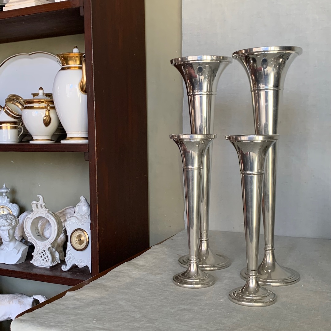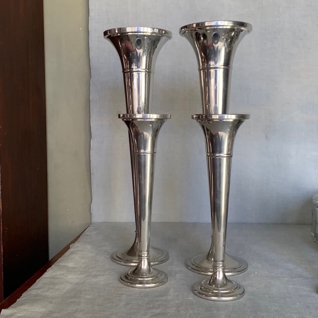 Quattro grandi vasi a tomba in argento su rame. Inghilterra, sec. XX