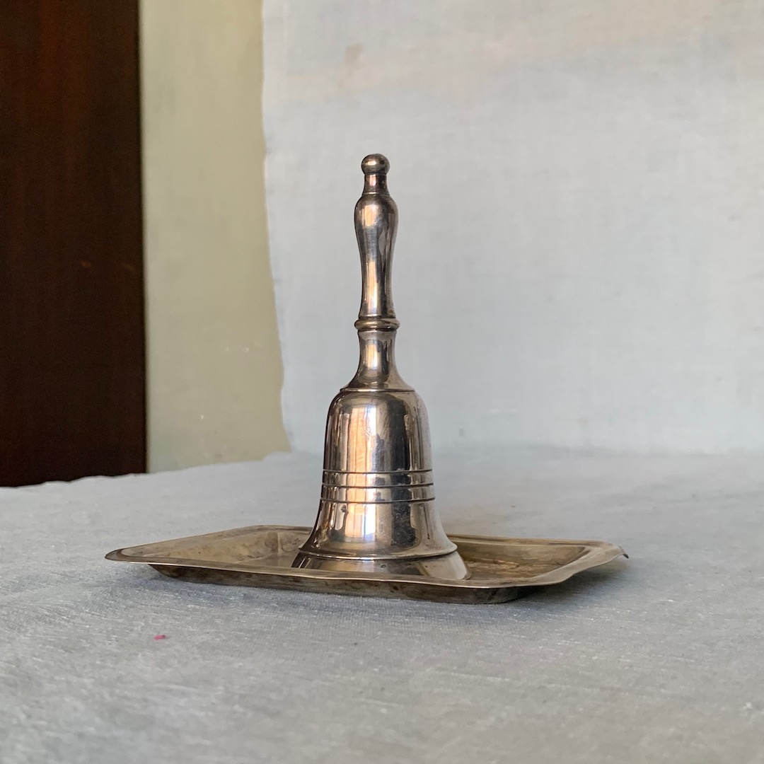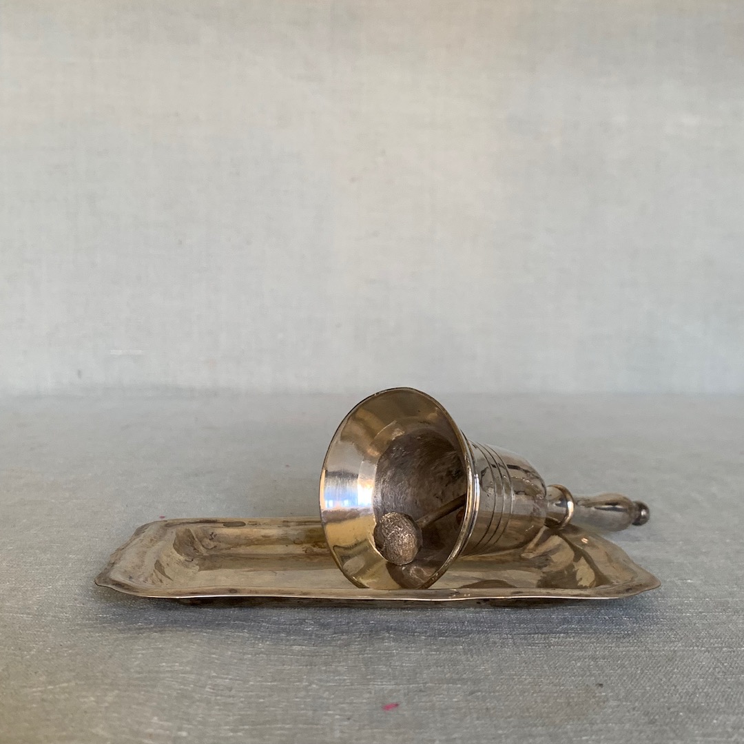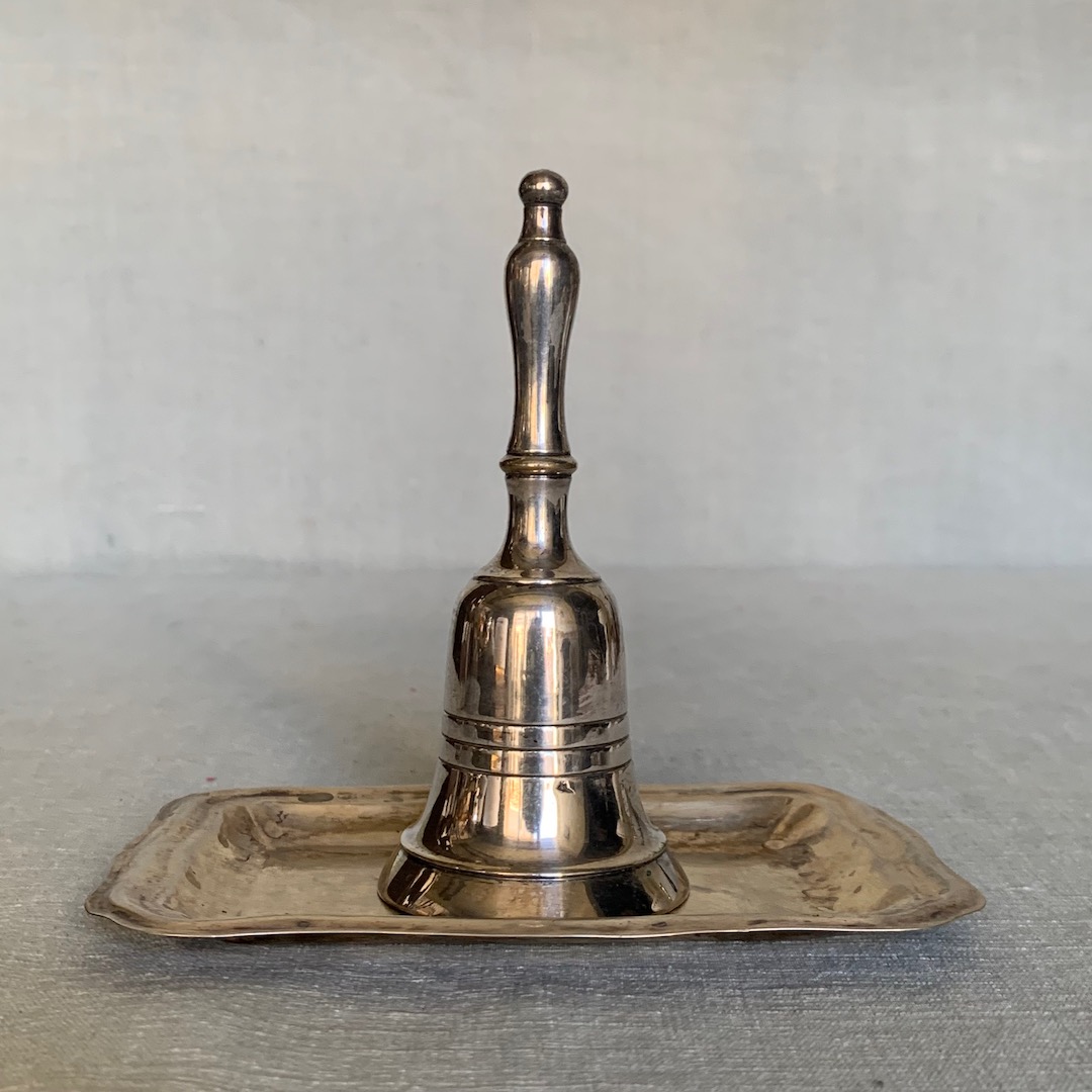 Set da scrivania in argento su rame piccola campana in bronzo con campana. Italia, sec. XX