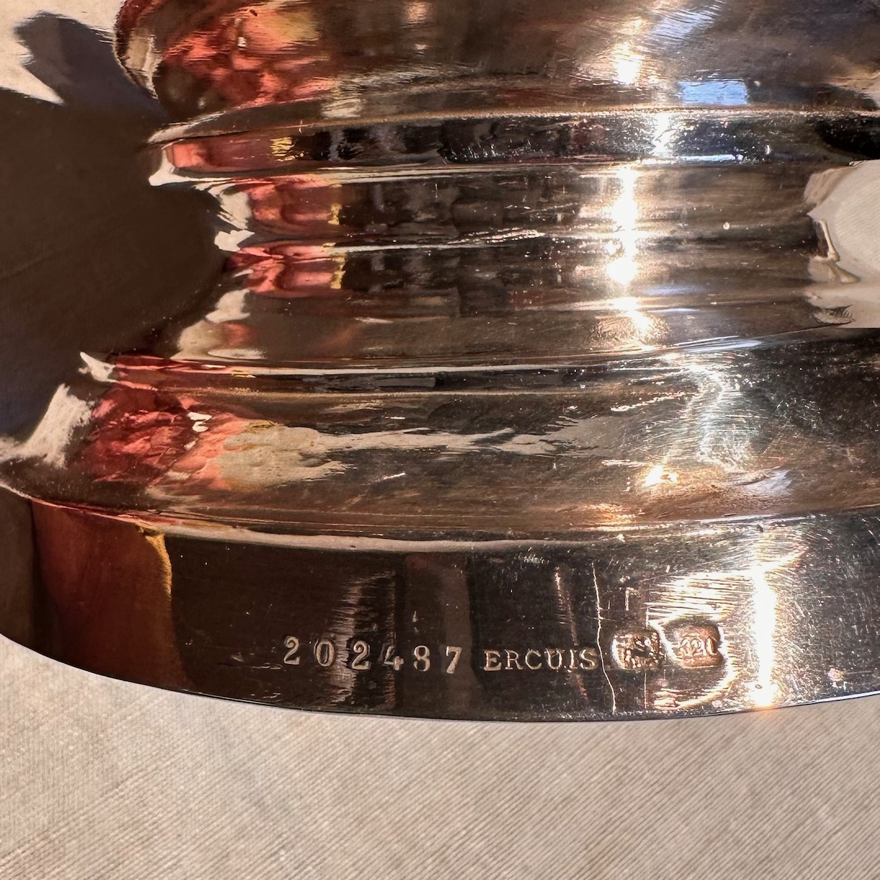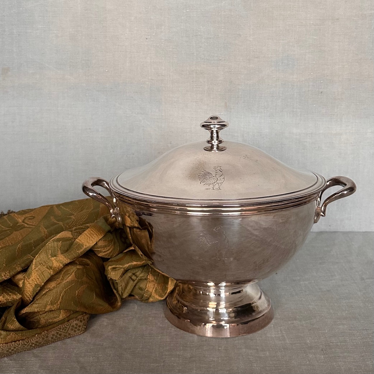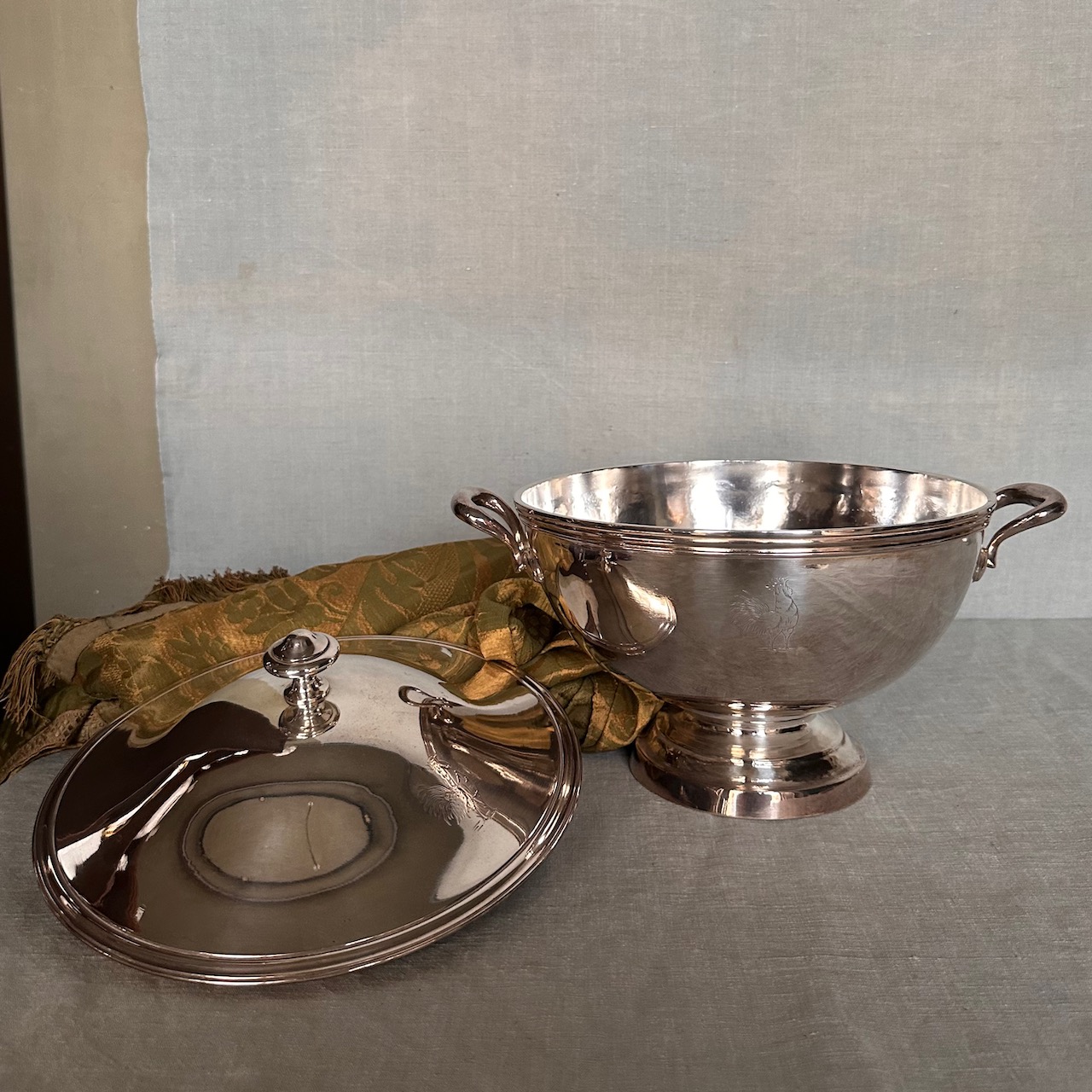 Zuppiera biansata argento su rame, cesellata con gallo. Italia, sec. XIX