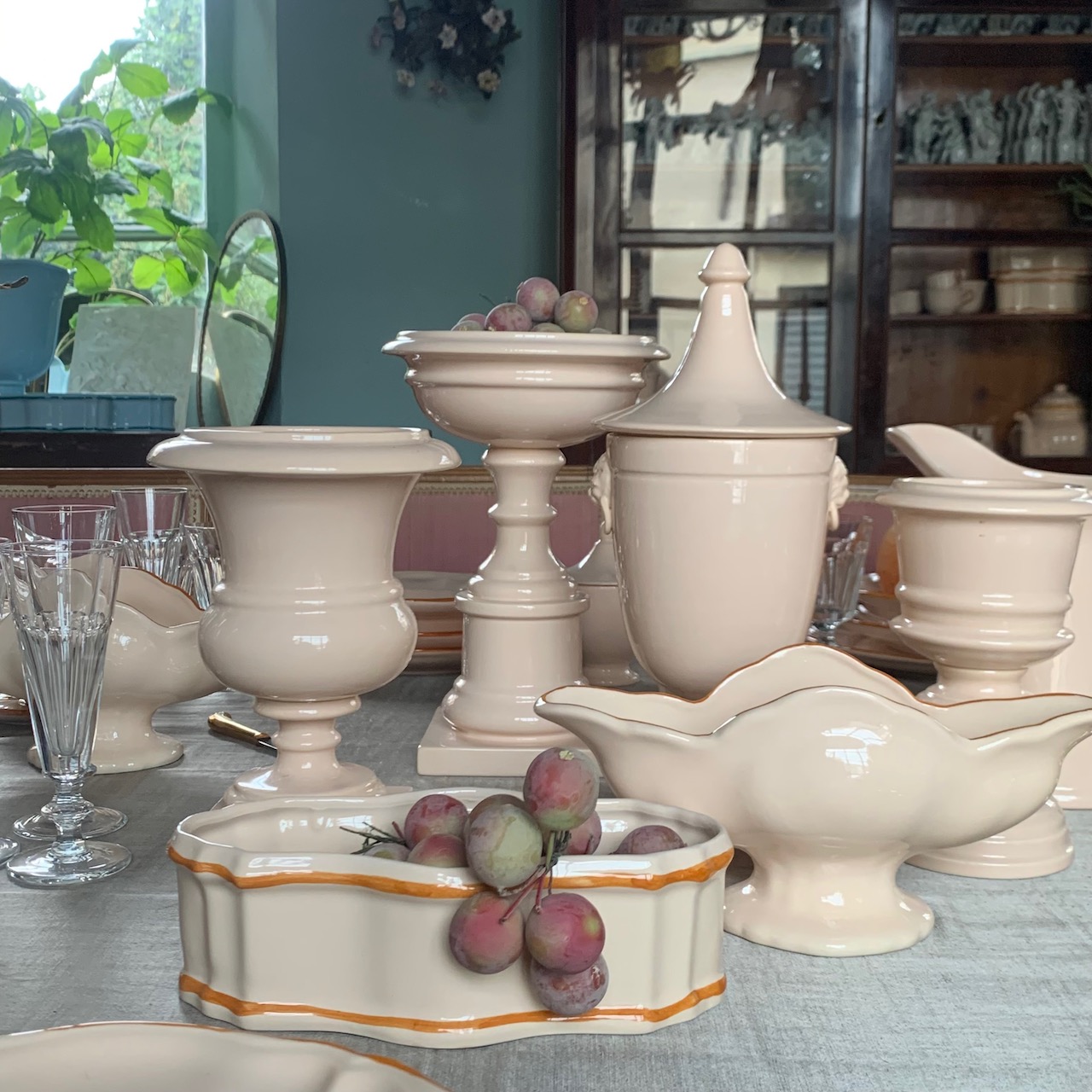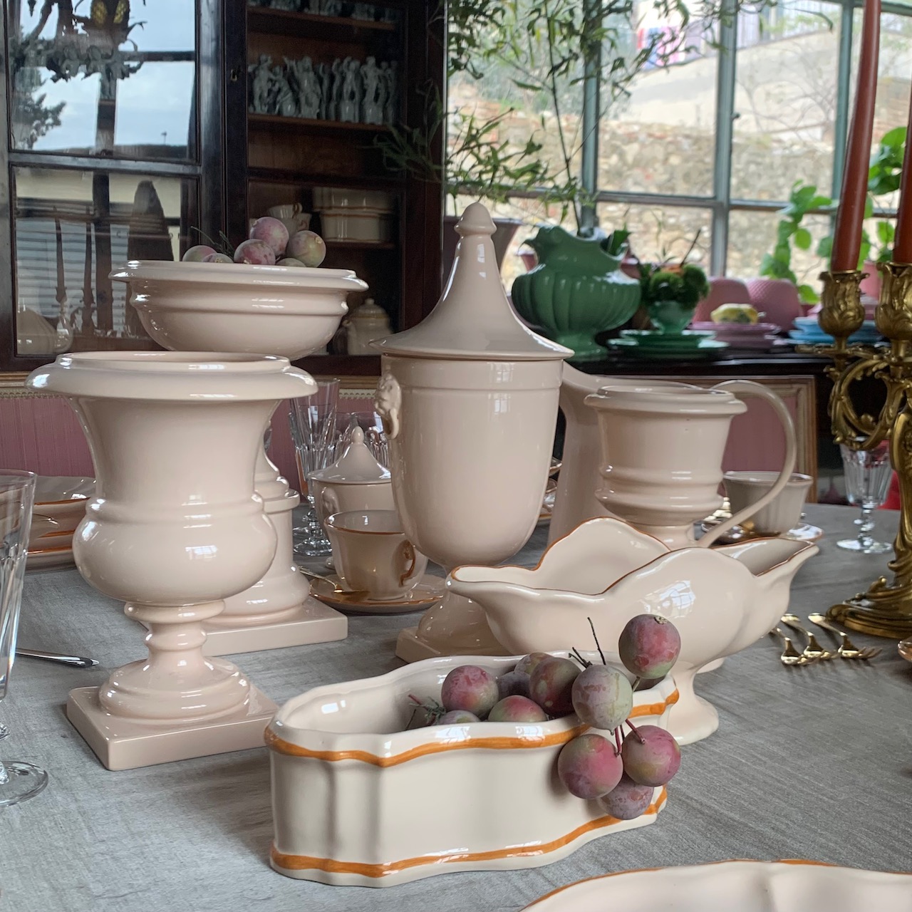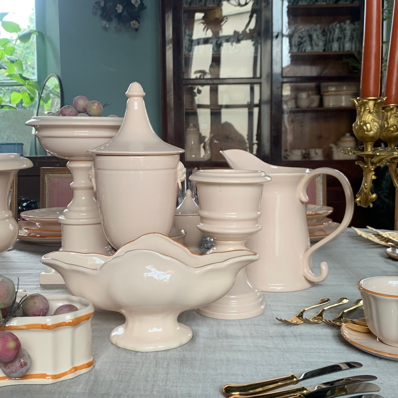 Accessori tavola in maiolica incarnato. Collebi, Toscana