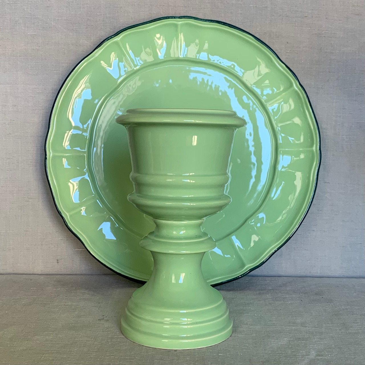 Collezione calici Maria Luigia, in maiolica a policromia pastello, disponibili in sette colori. Collebi, Toscana