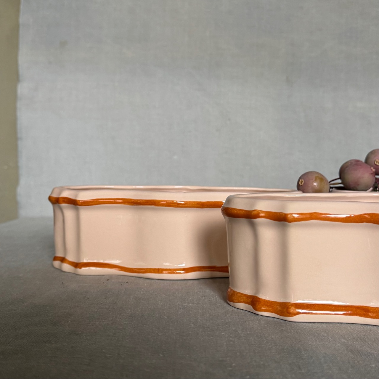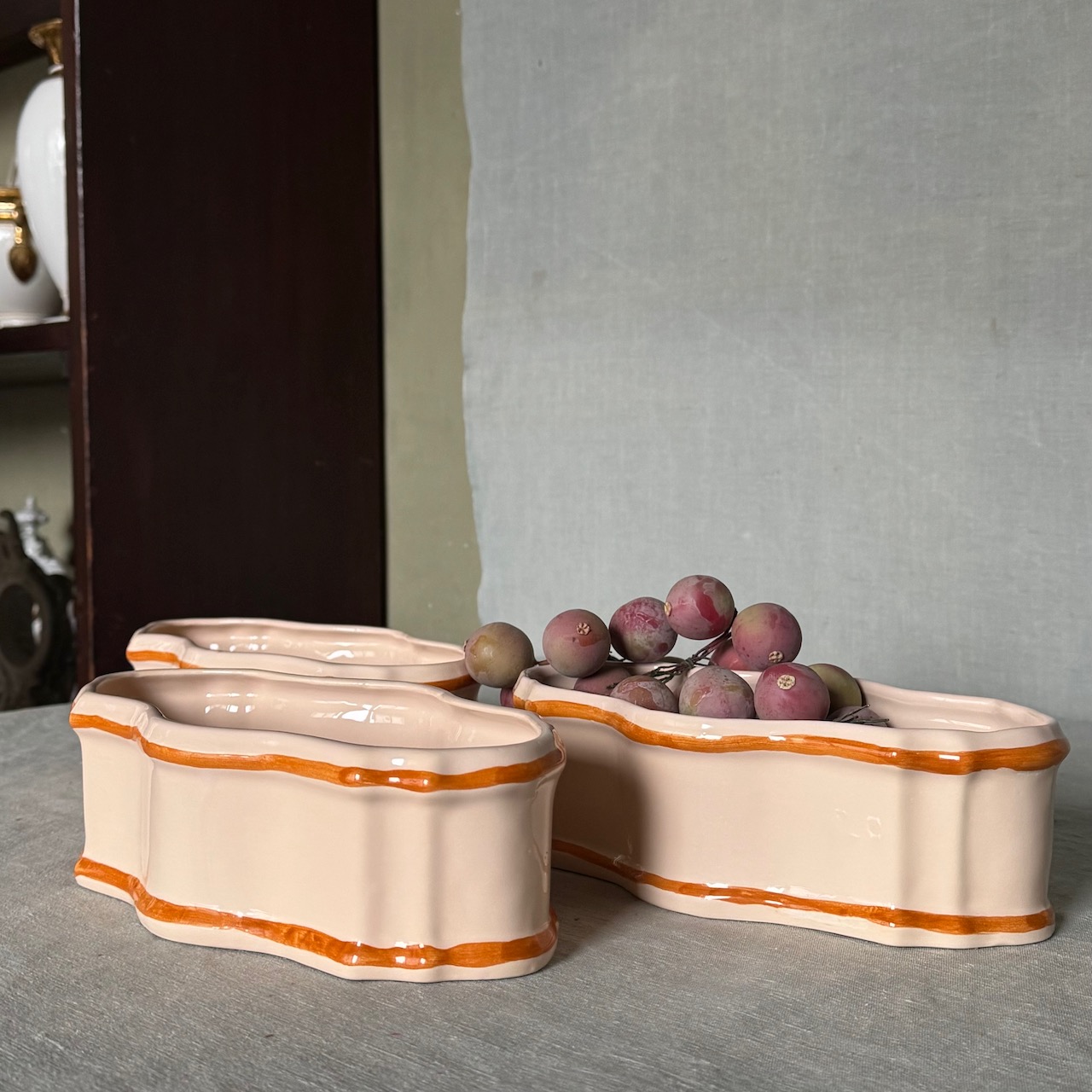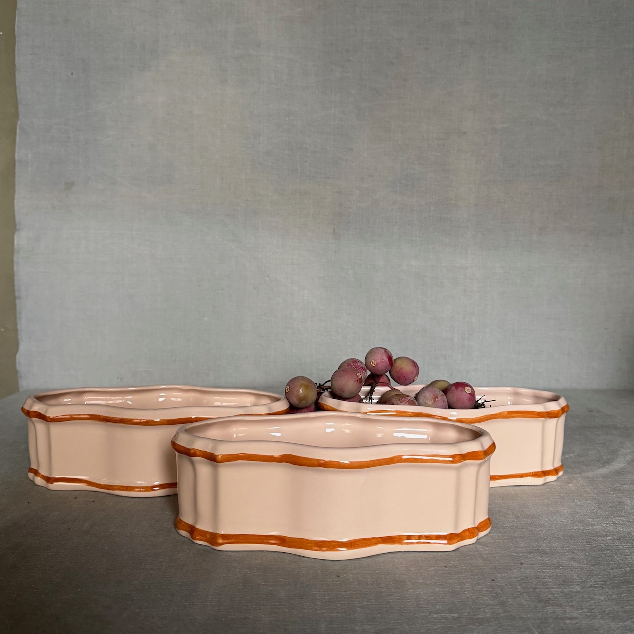 Fioriera Maria Luigia, centrotavola in maiolica incarnato. Collebi, Toscana