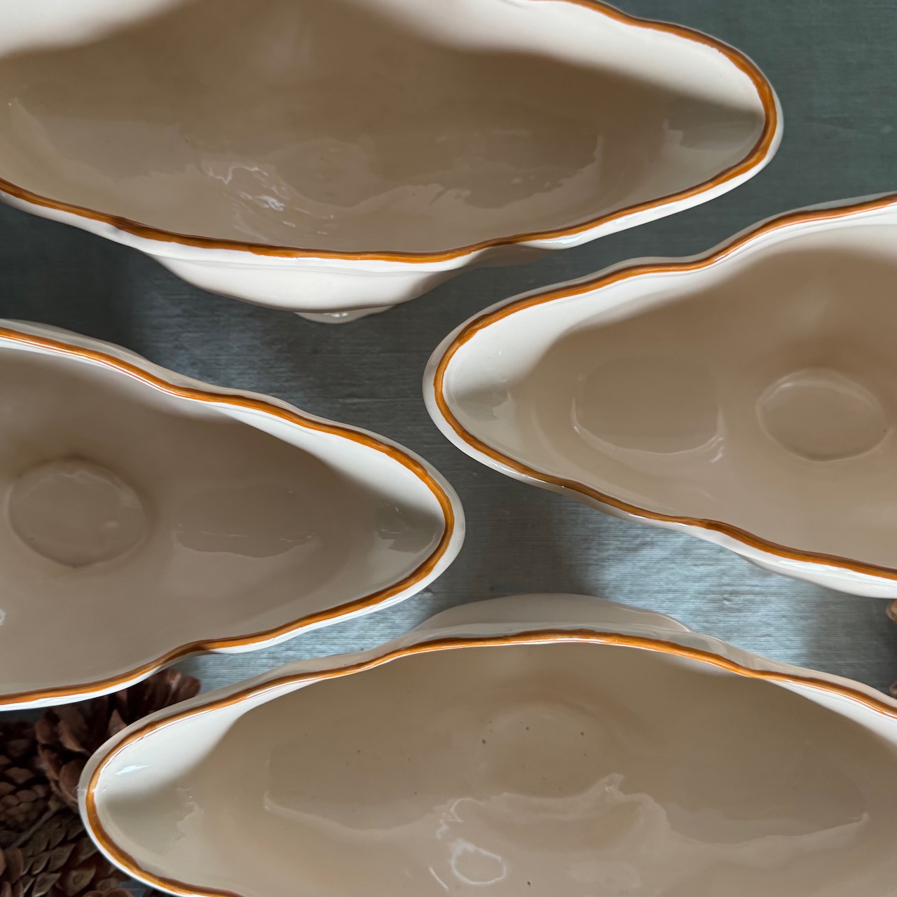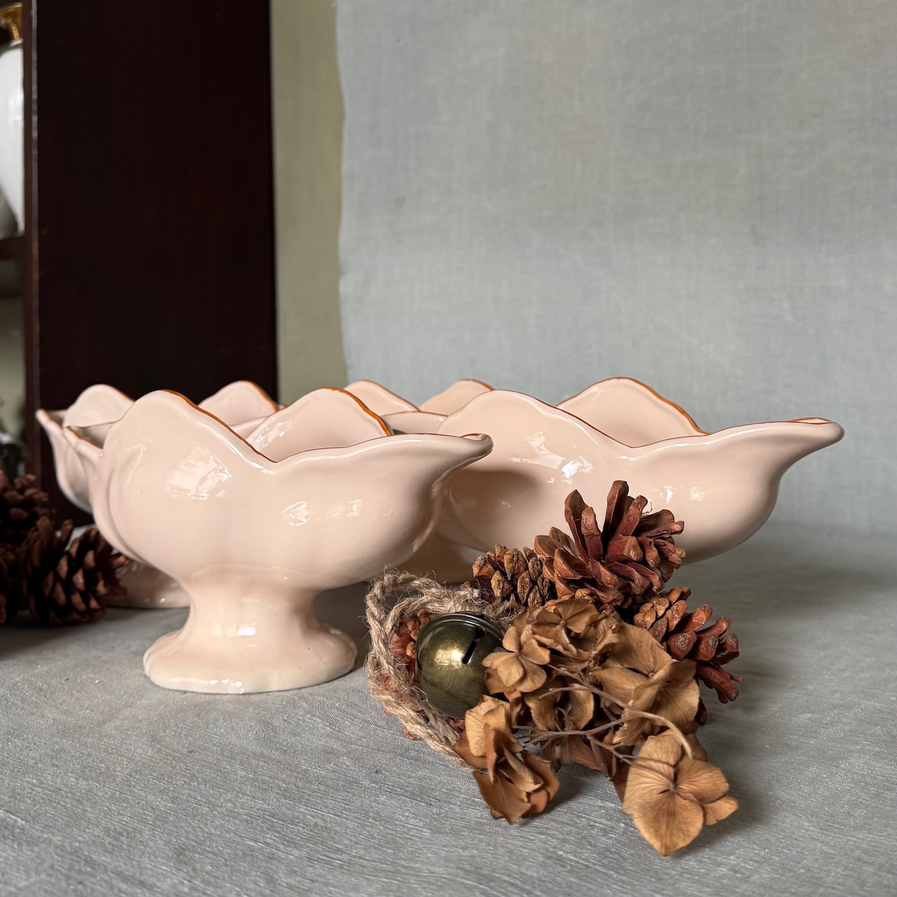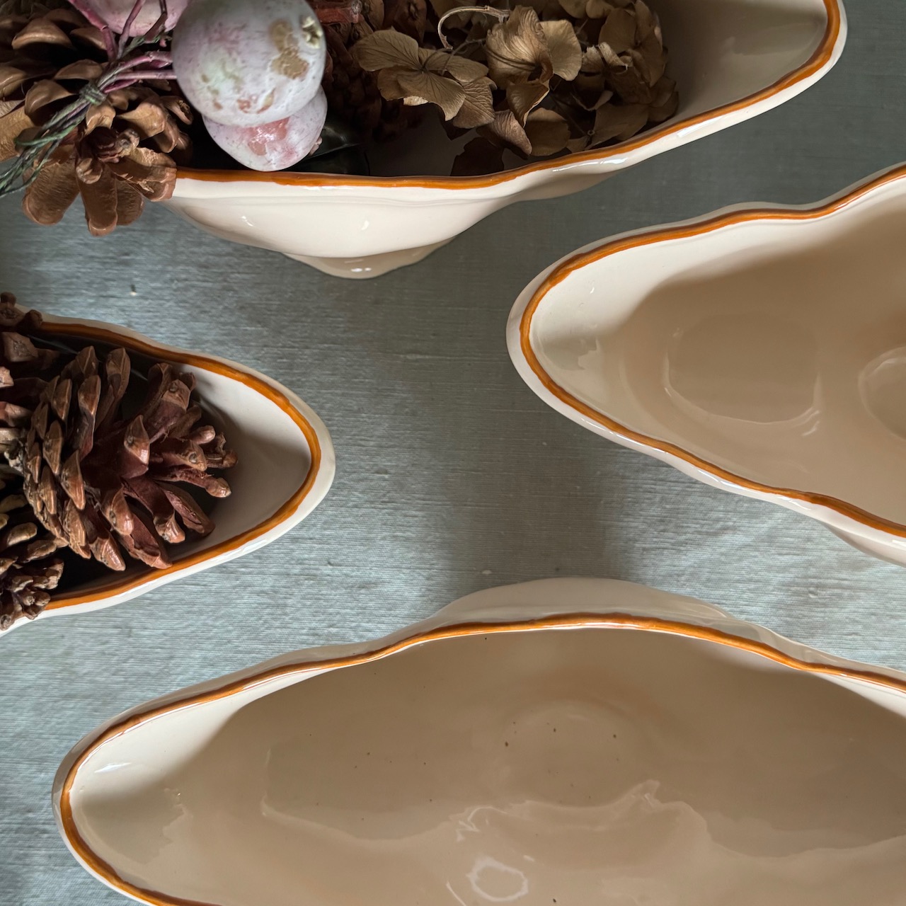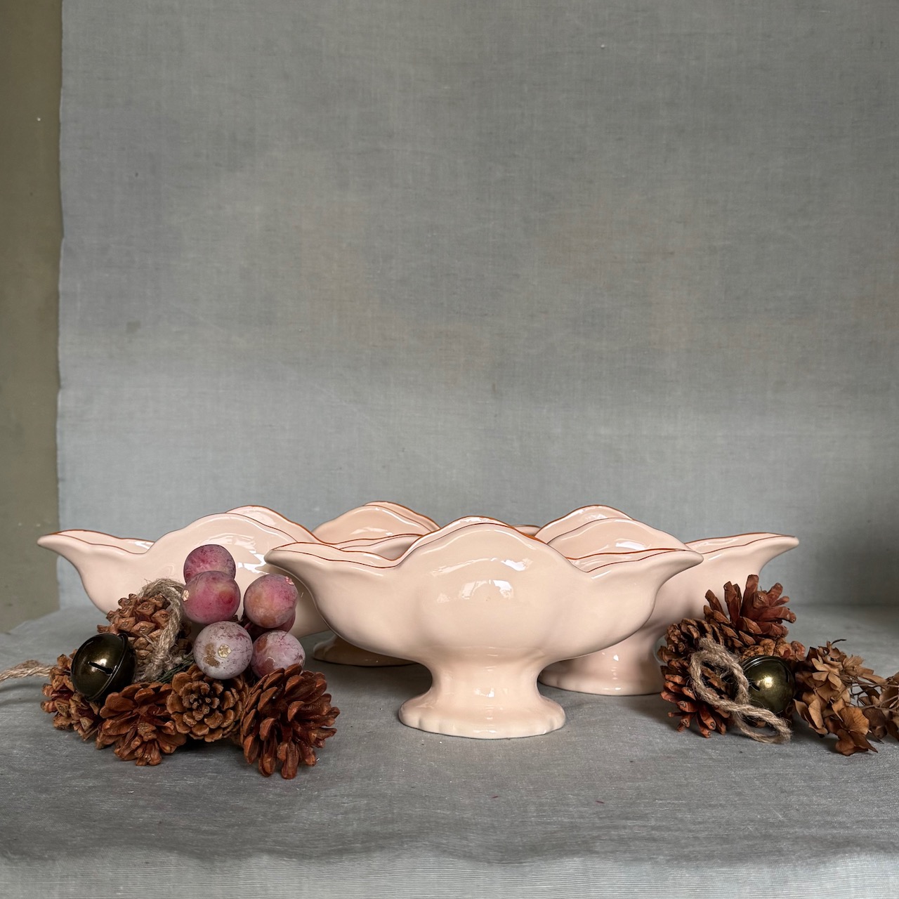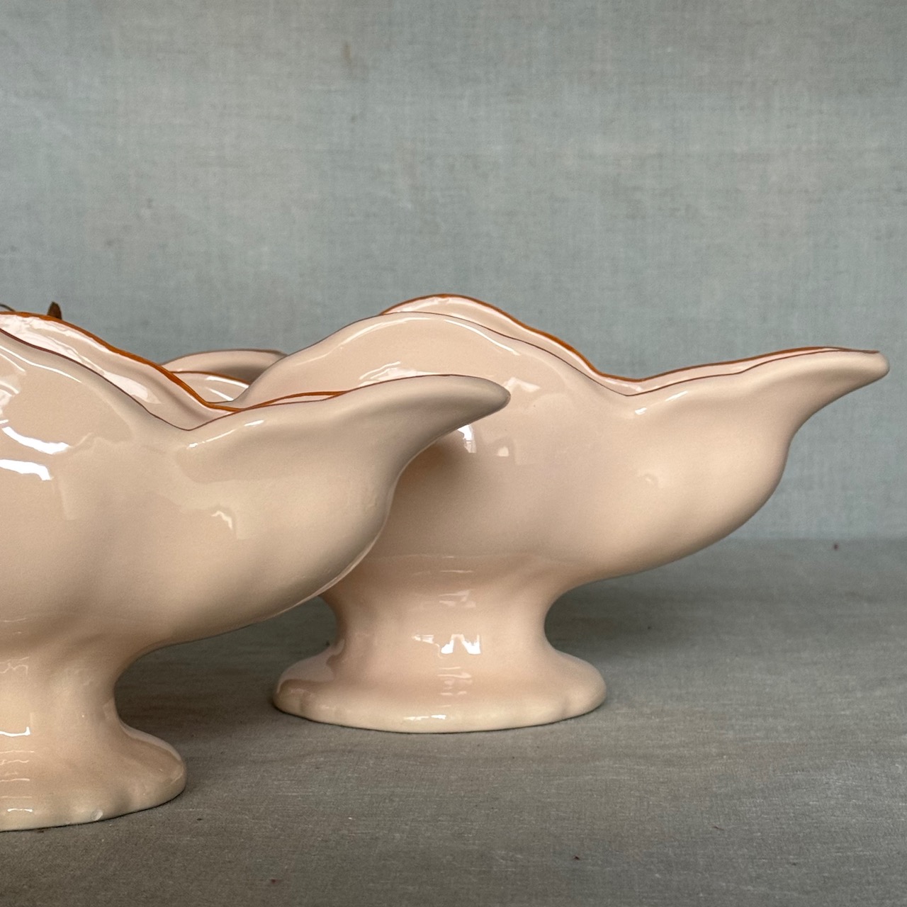 Navicella Maria Luigia, salsiera centrotavola a barchetta in maiolica incarnato Collebi, Toscana