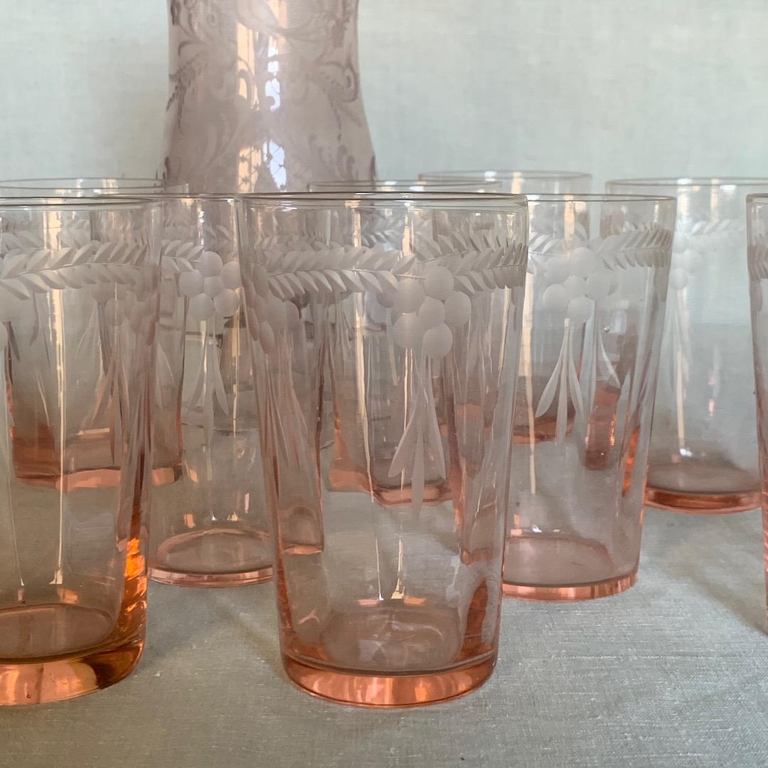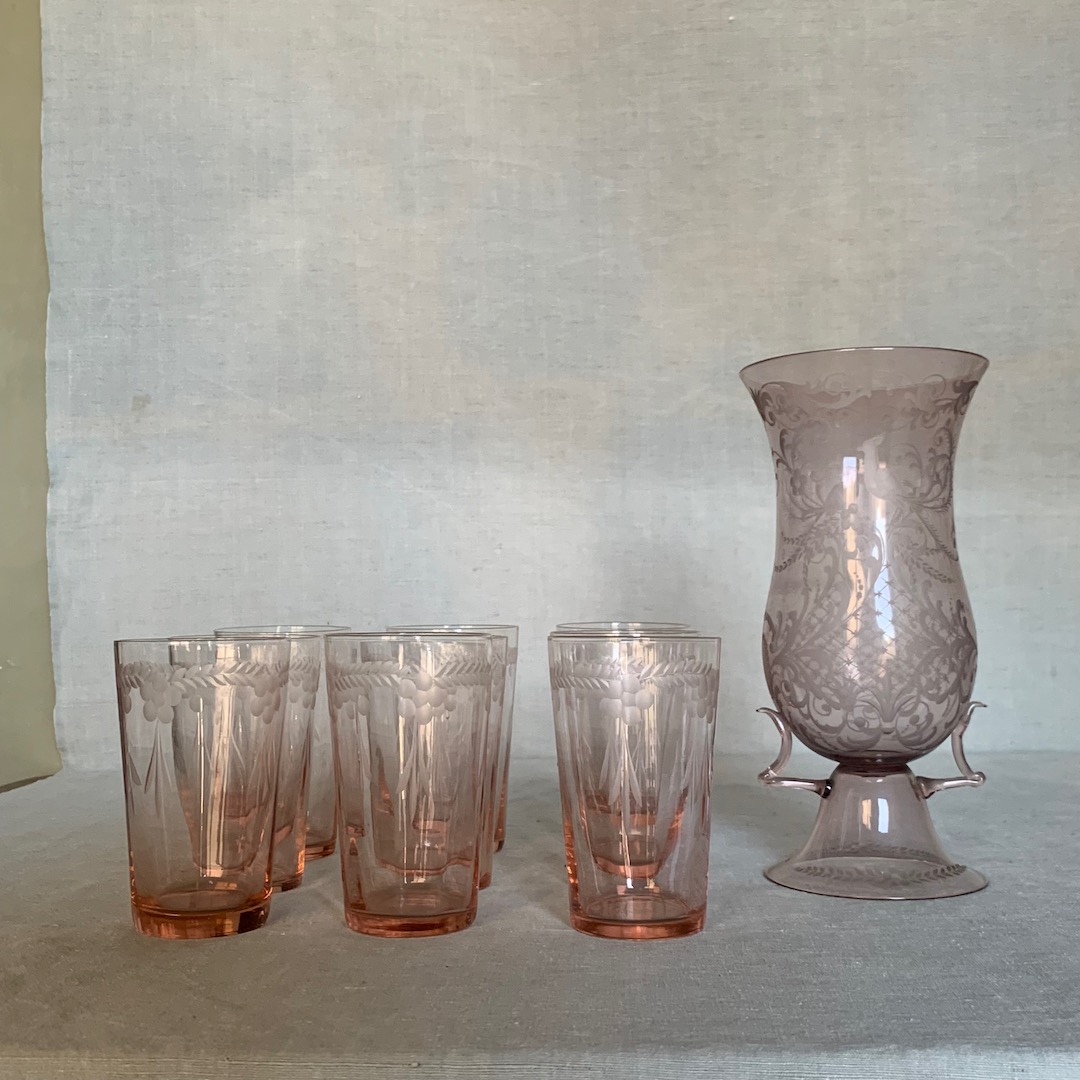 Bicchieri in Vetro acídalo a motivi floreali. Italia, sec. XIX