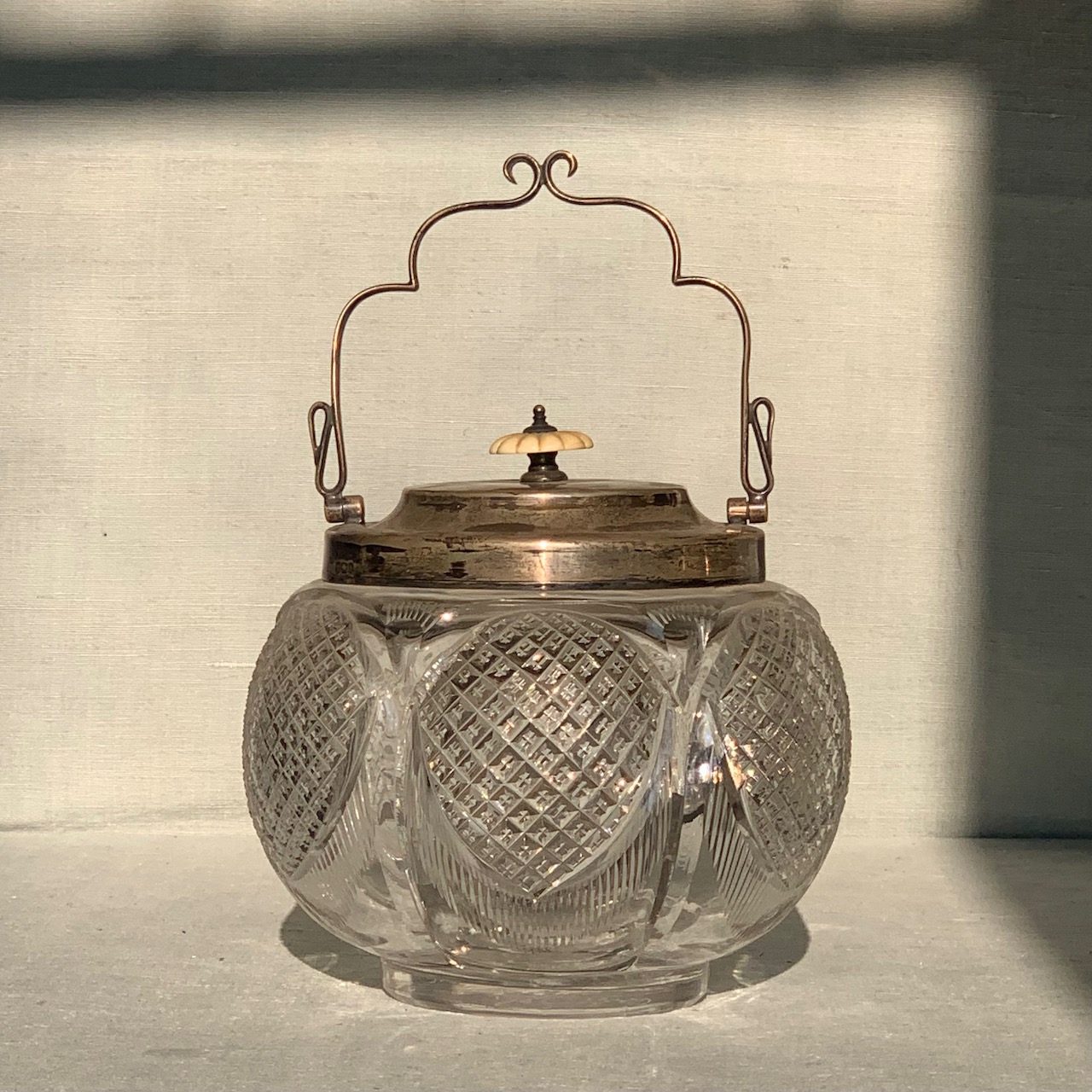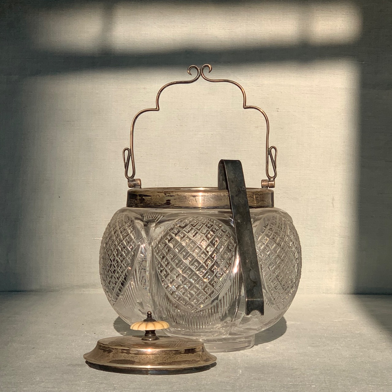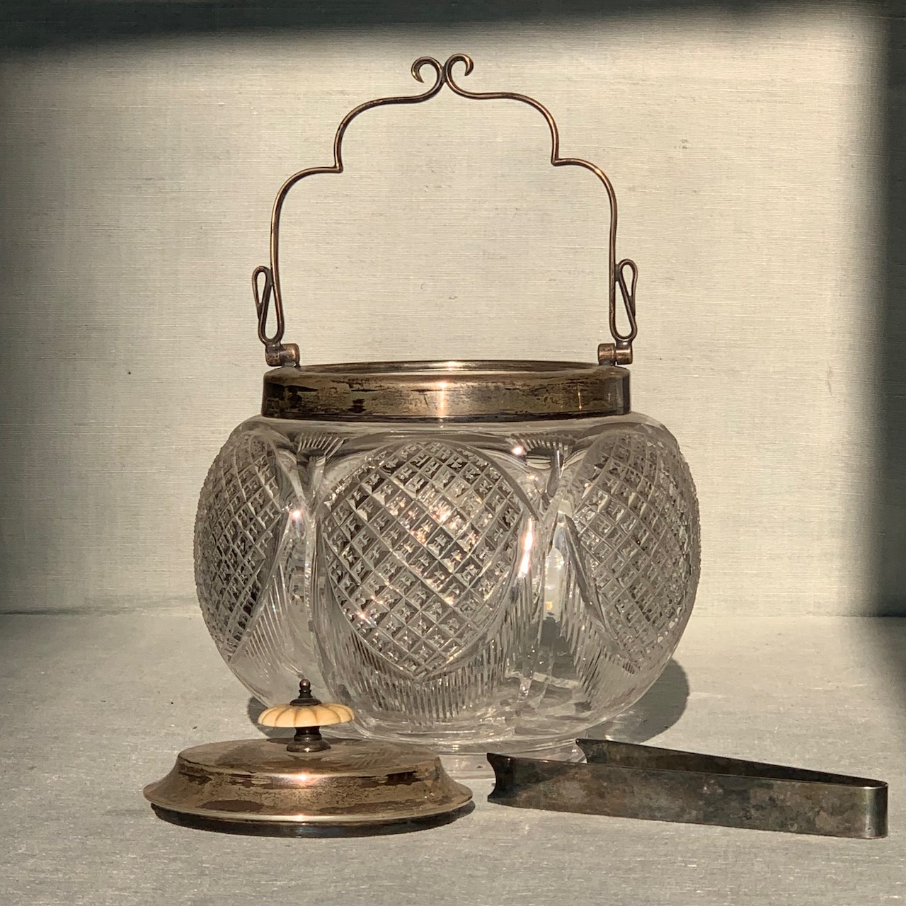 Secchiello ghiaccio in cristallo lavorato e argento su rame. Italia, sec. XX