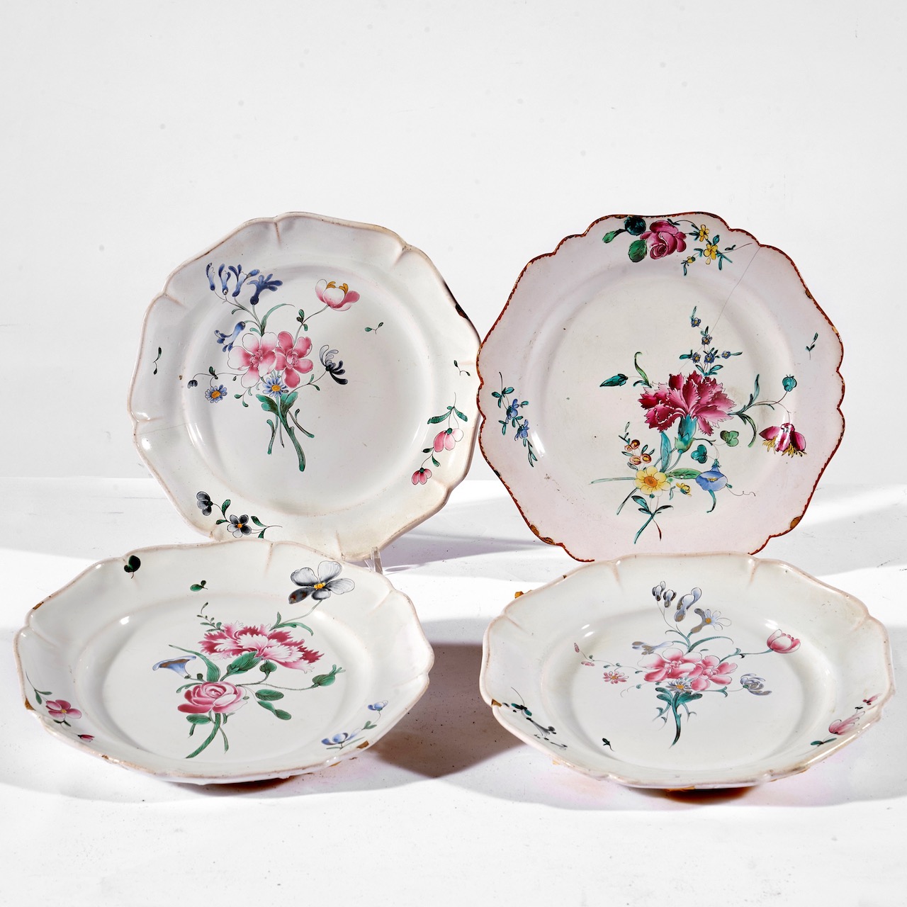 Quattro piatti maiolica decorata. Italia, sec. XIX