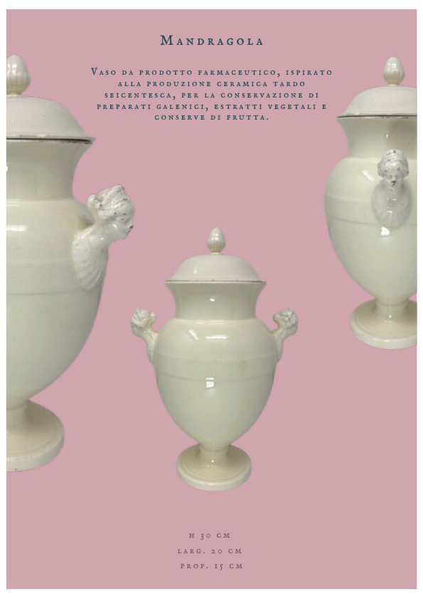 Collezione Mandragola, in maiolica a policromia pastello, disponibile in sette colori. Collebi, Toscana
