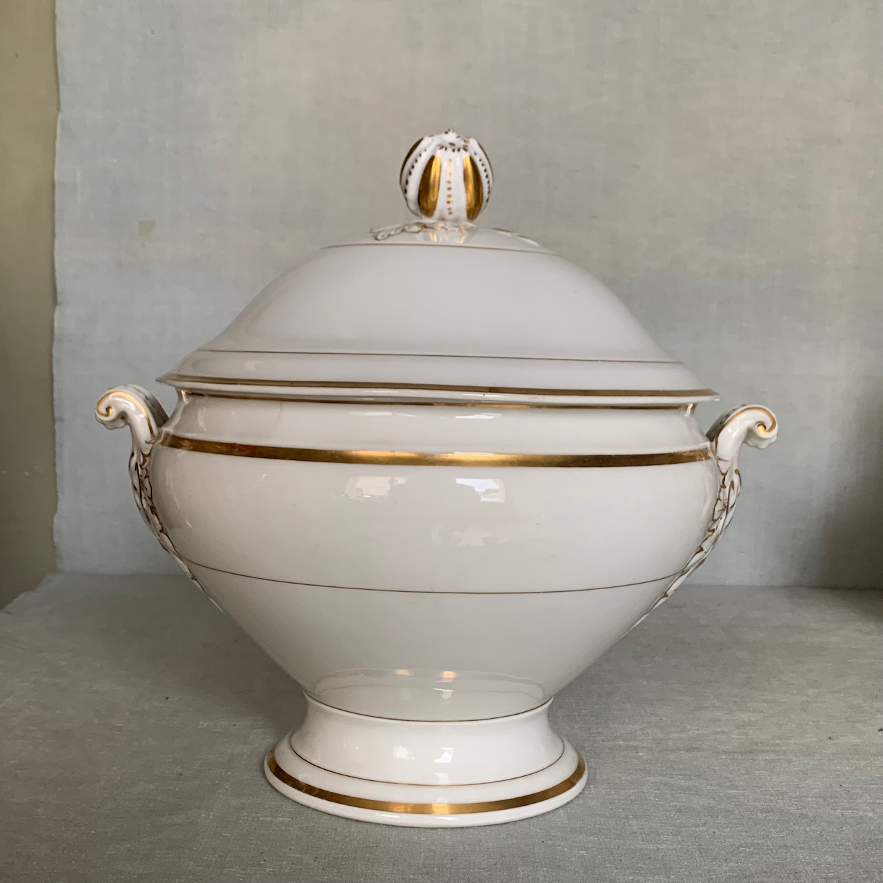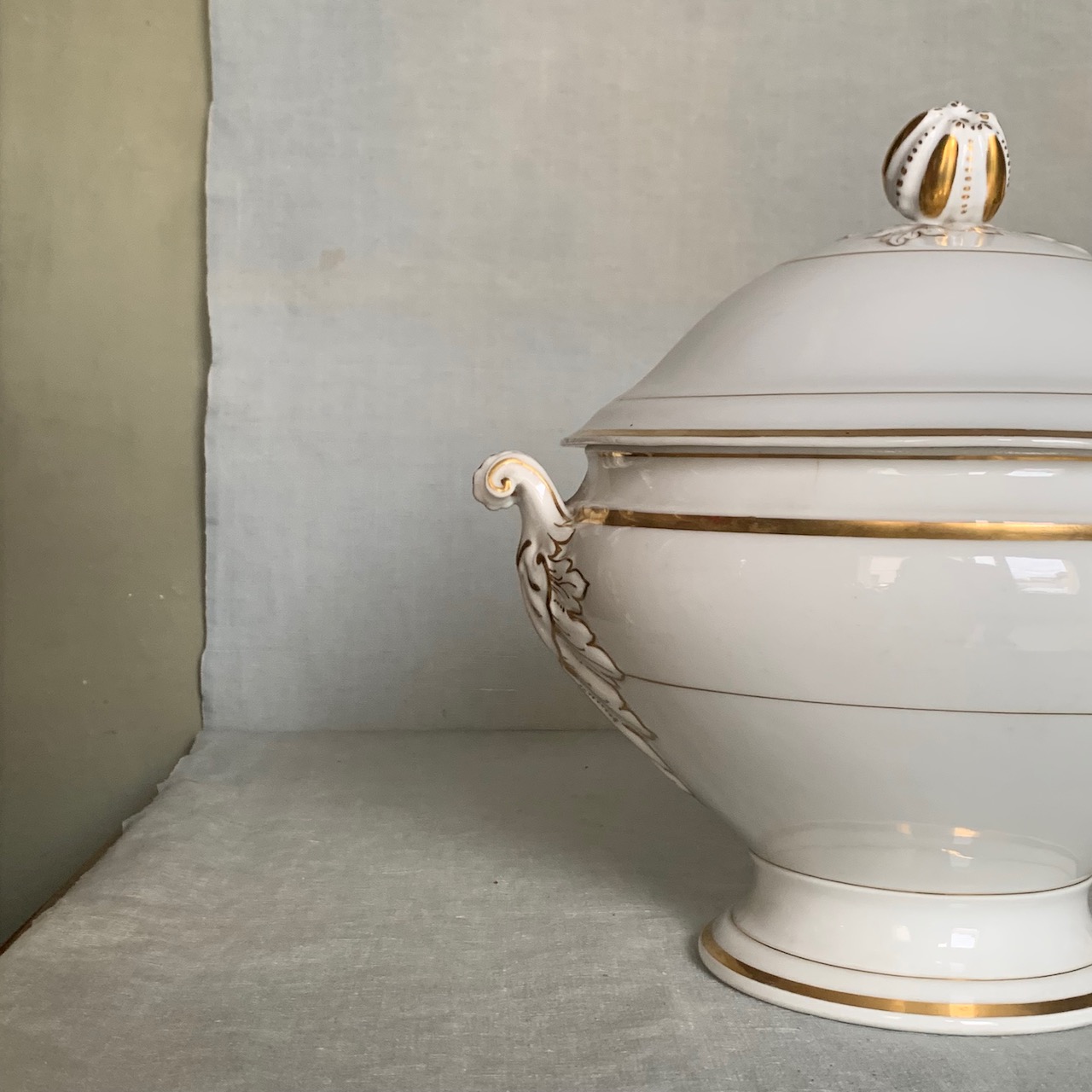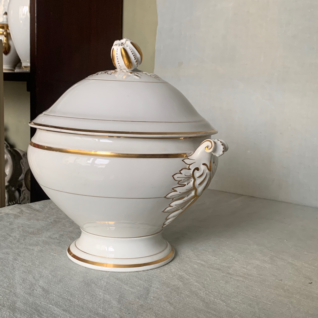 Zuppiera in porcellana bianca e filo oro, R.Ginori. Italia, sec. XIX