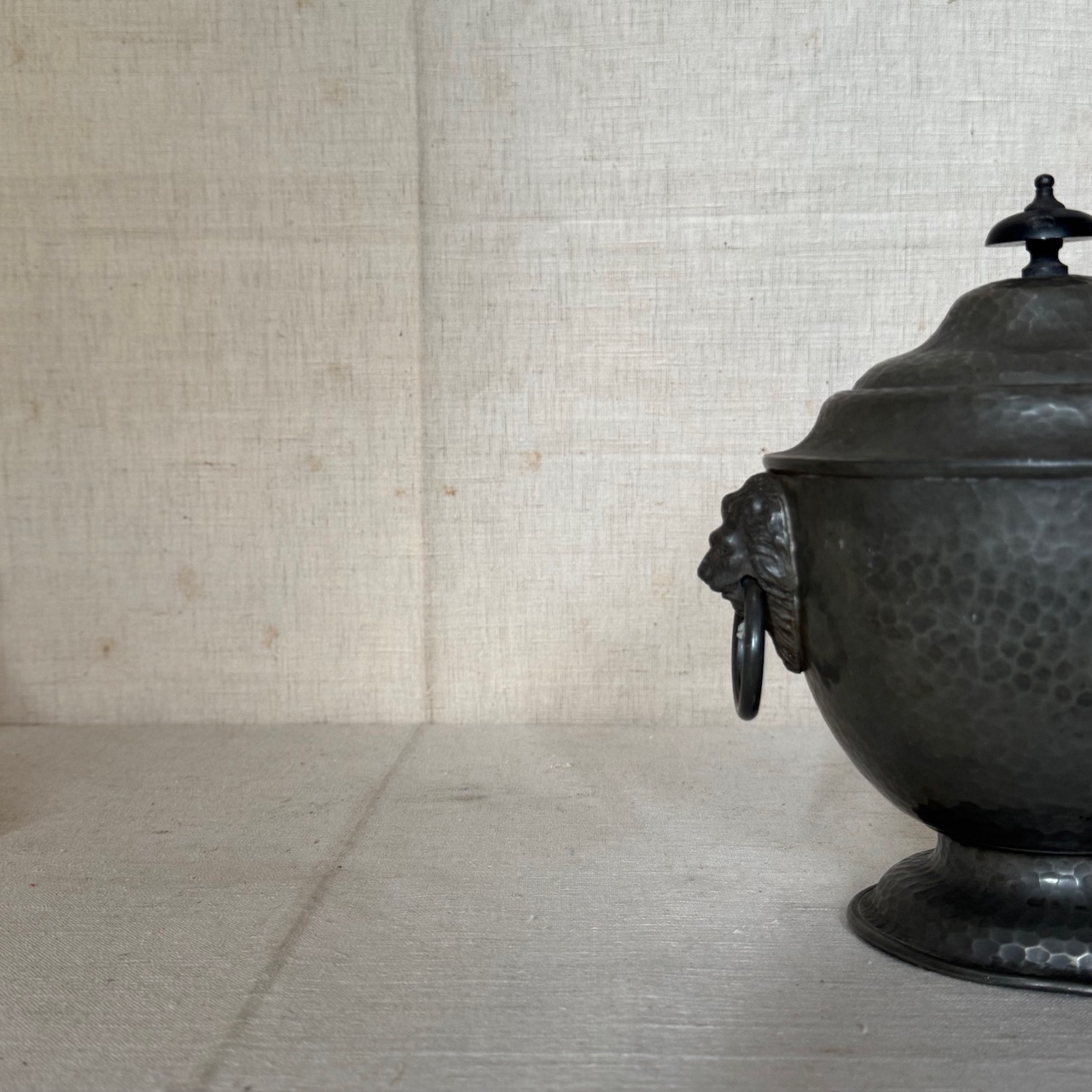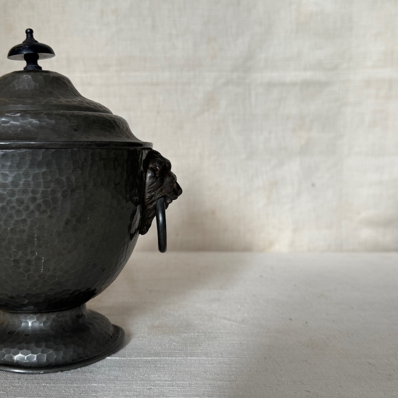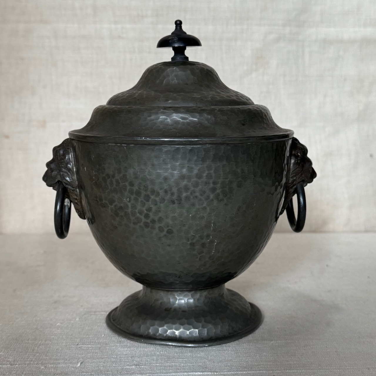 Urna Impero con anse a teste di leone, in peltro martellato. Italia, sec. XIX