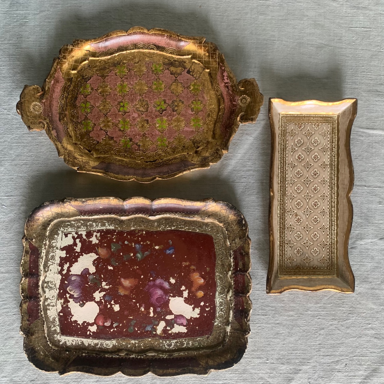 Collezione vassoi veneziani in legno, dipinti a mano. Italia, sec. XX