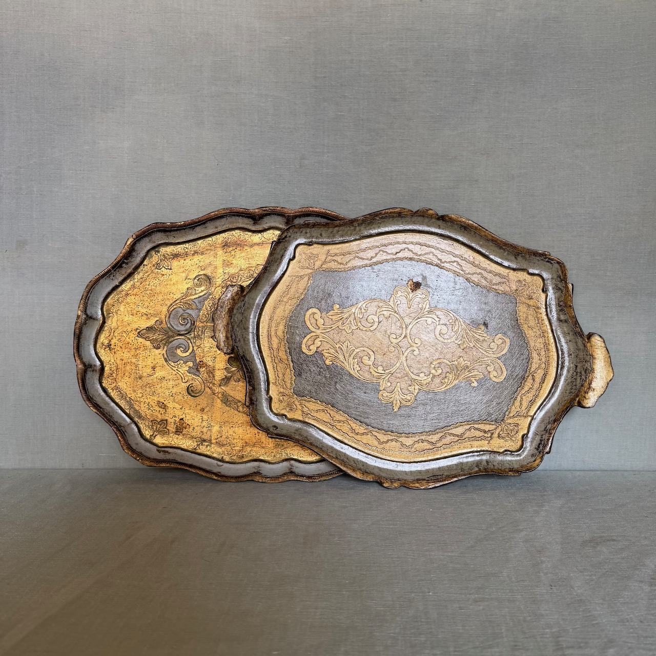 Due vassoi fiorentini dipinti a mano oro w argento. Italia, sec. XX