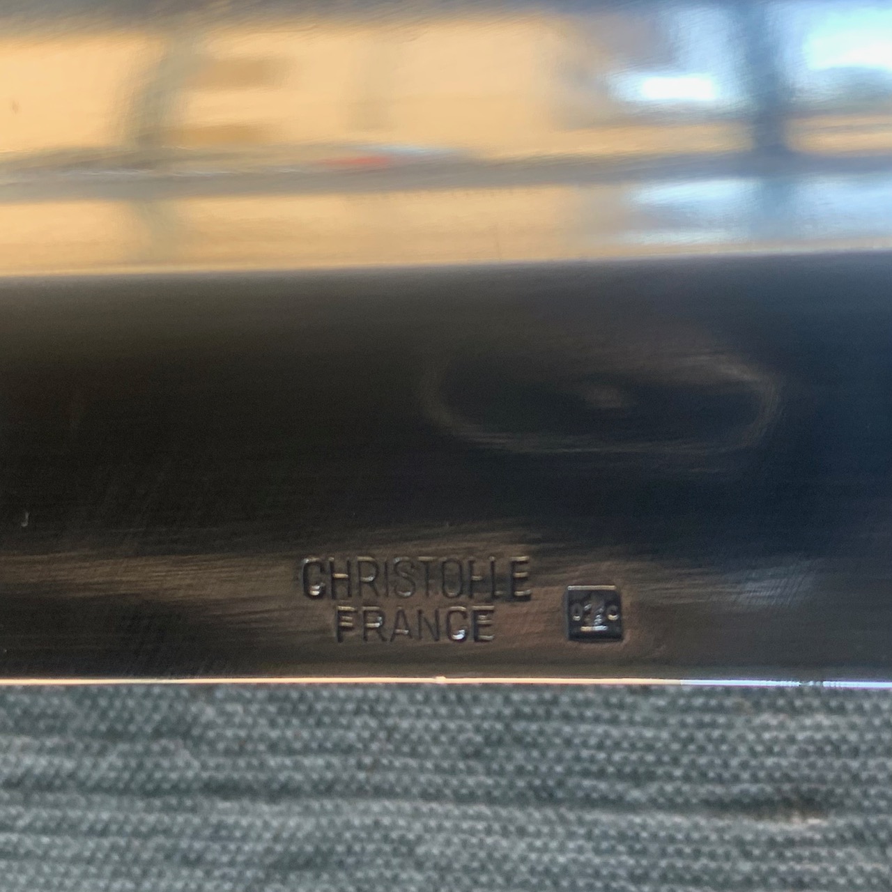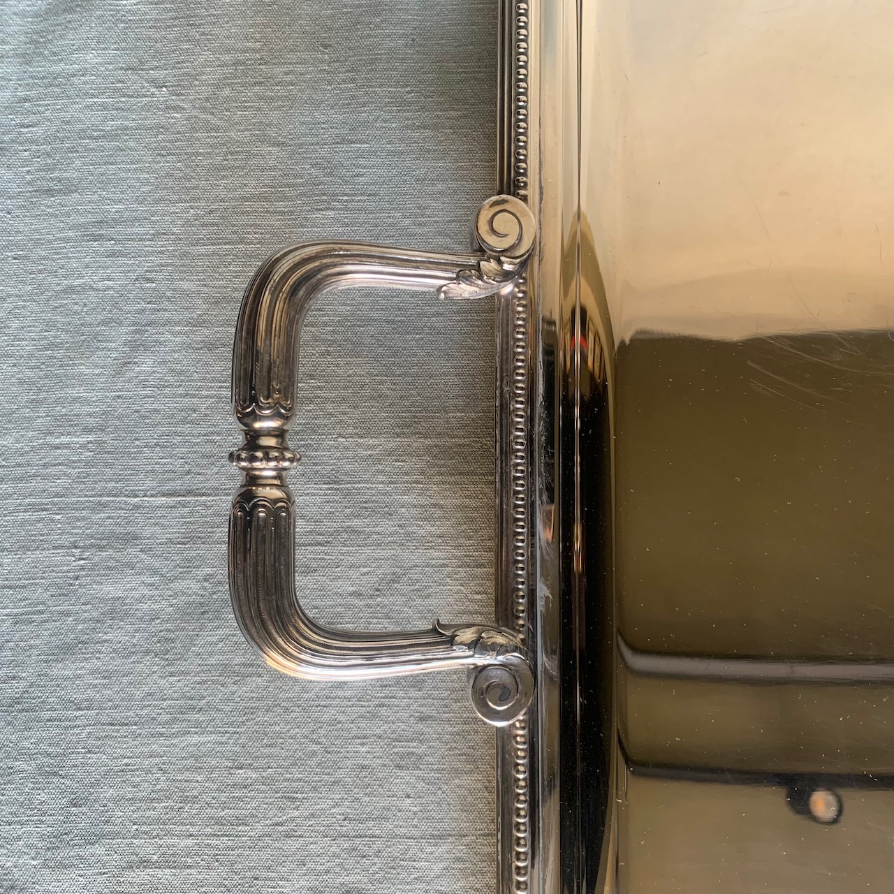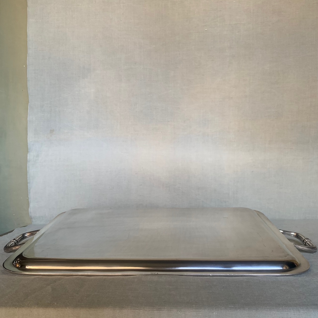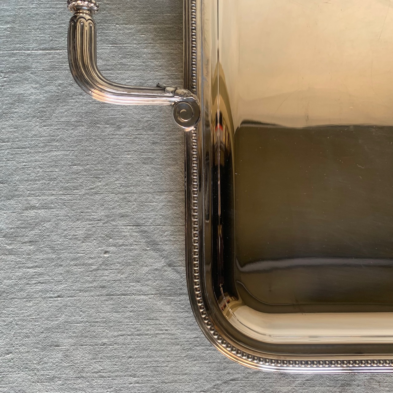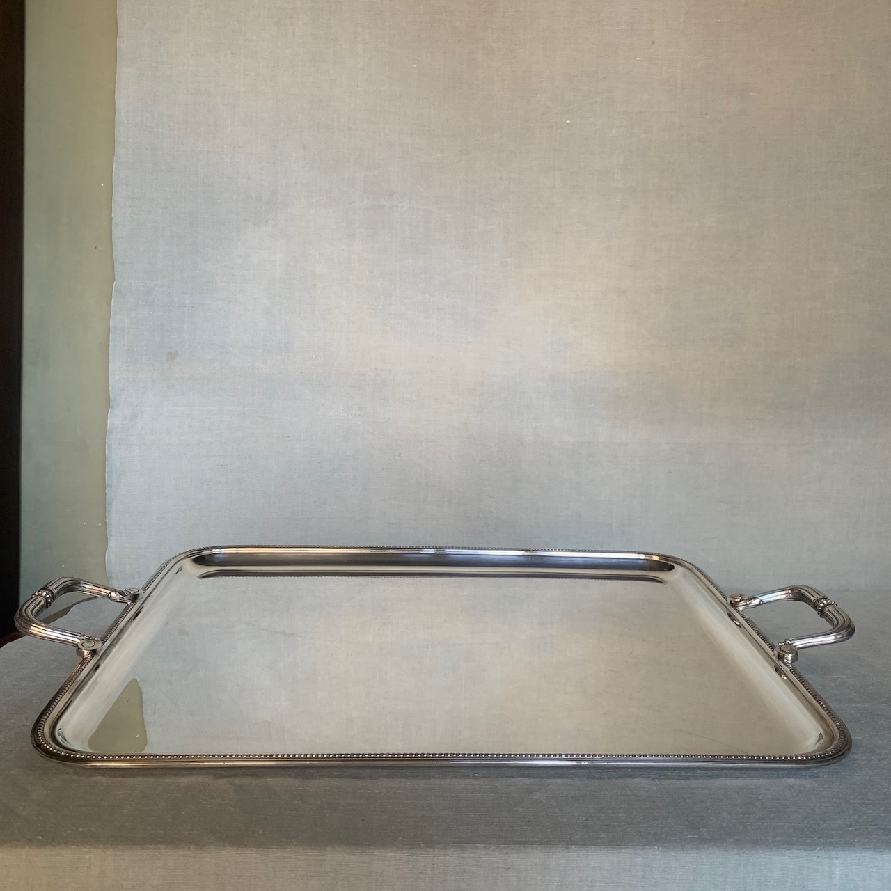 Guantiera Perles Christofle in argento, forma rettangolare con bordo perlinato. Francia, Sec.XX