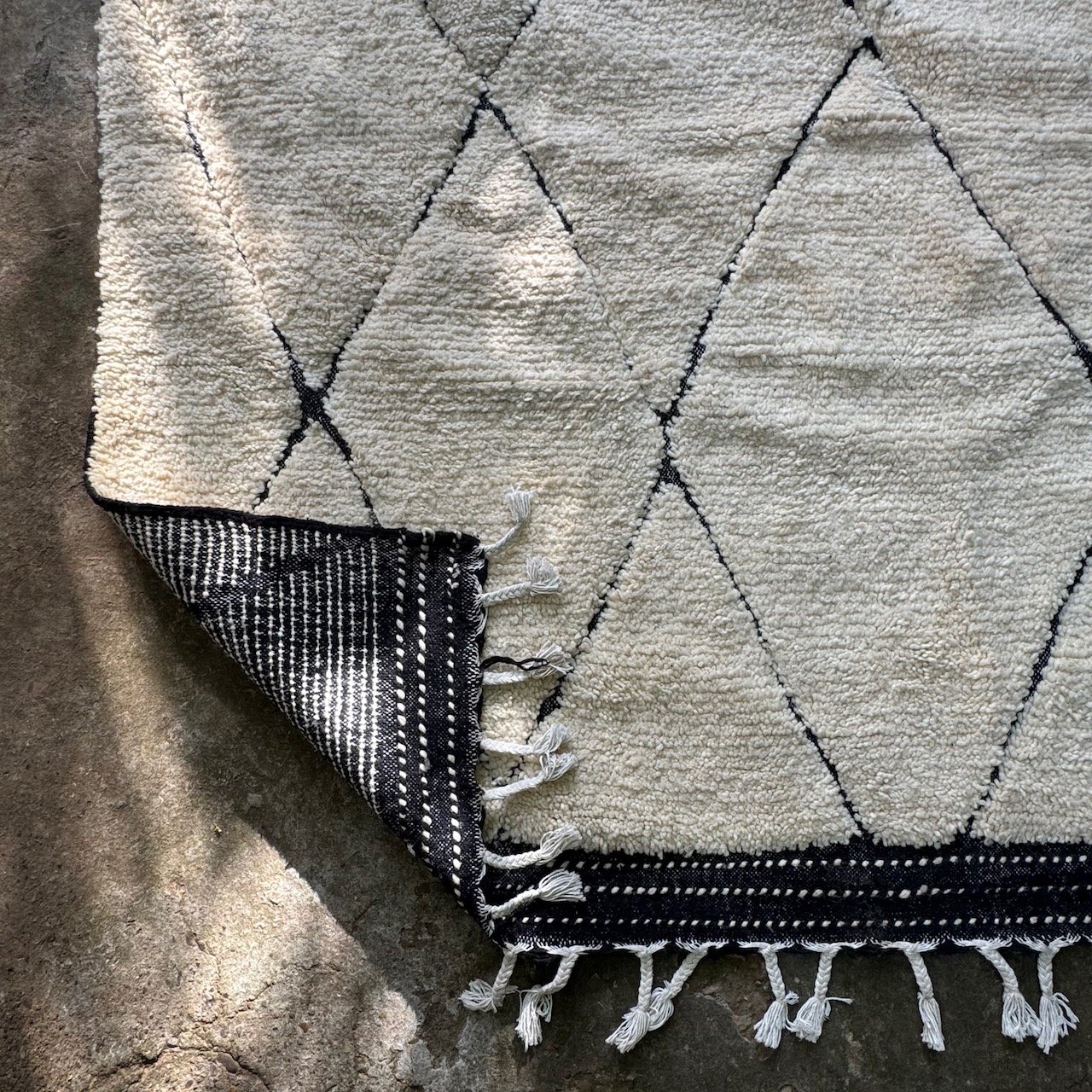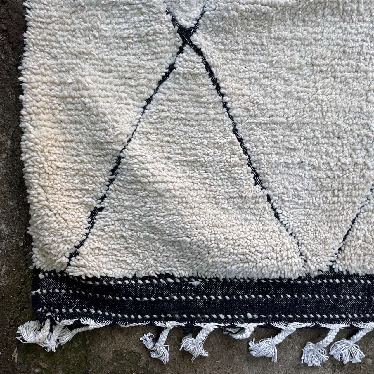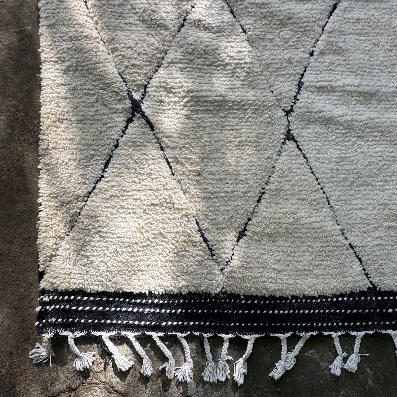 Grande tappeto Turco, in lana con motivo a rombi neri. Turchia, sec. XX