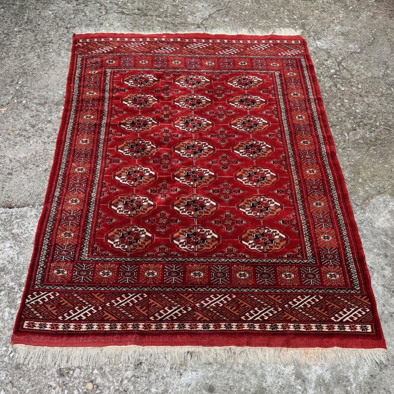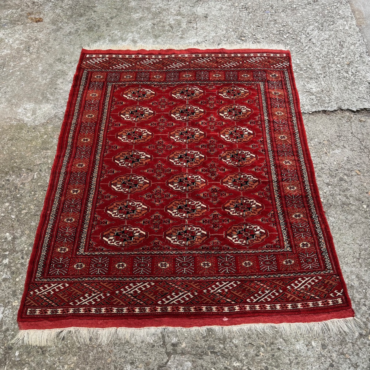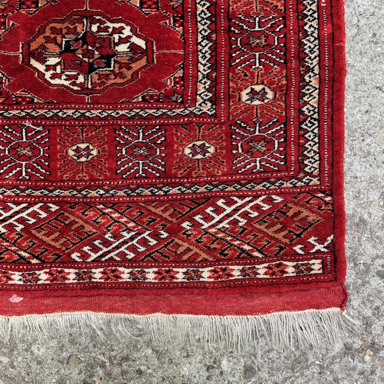 Tappeto Bokhara, annodato a mano, fondo rosso. Turchia, sec. XX