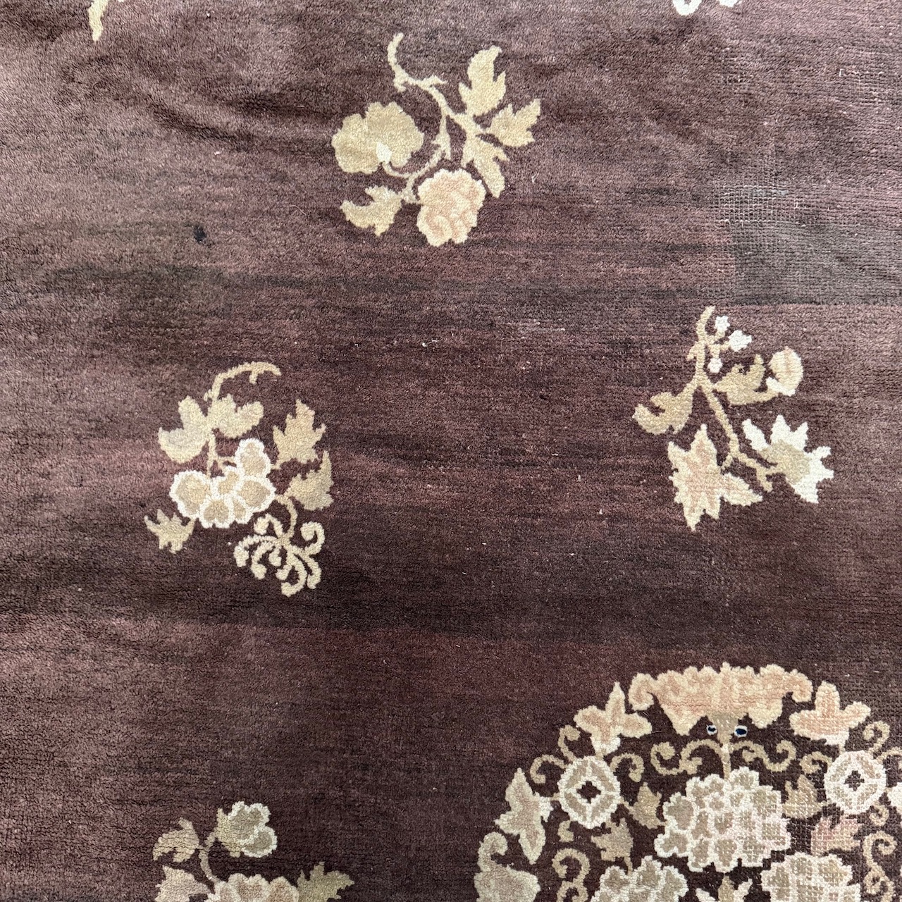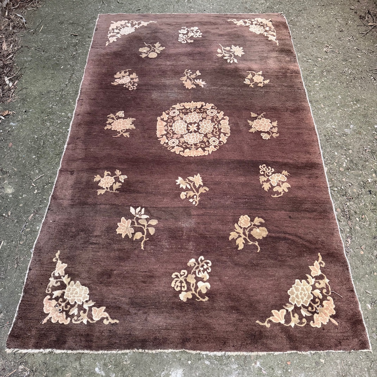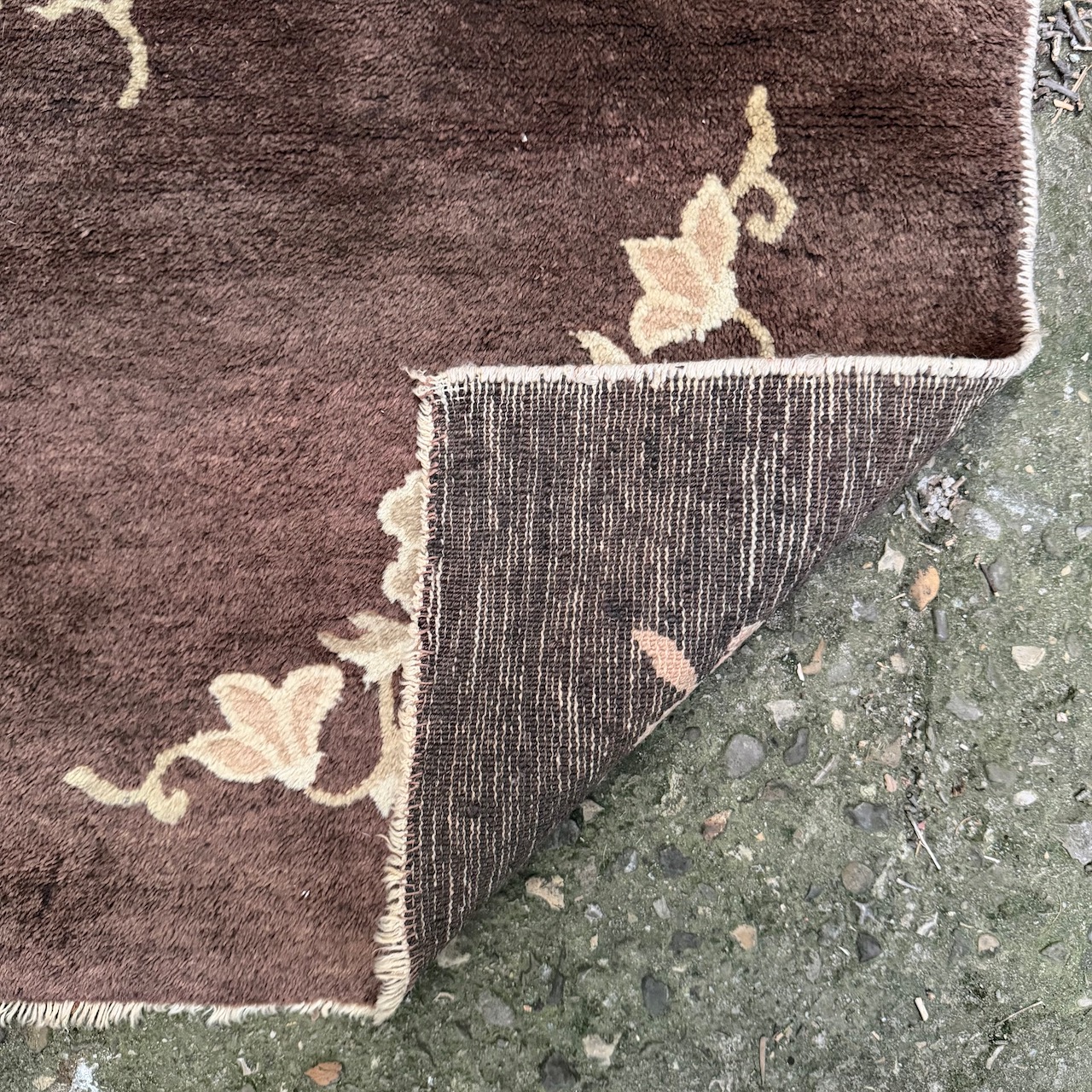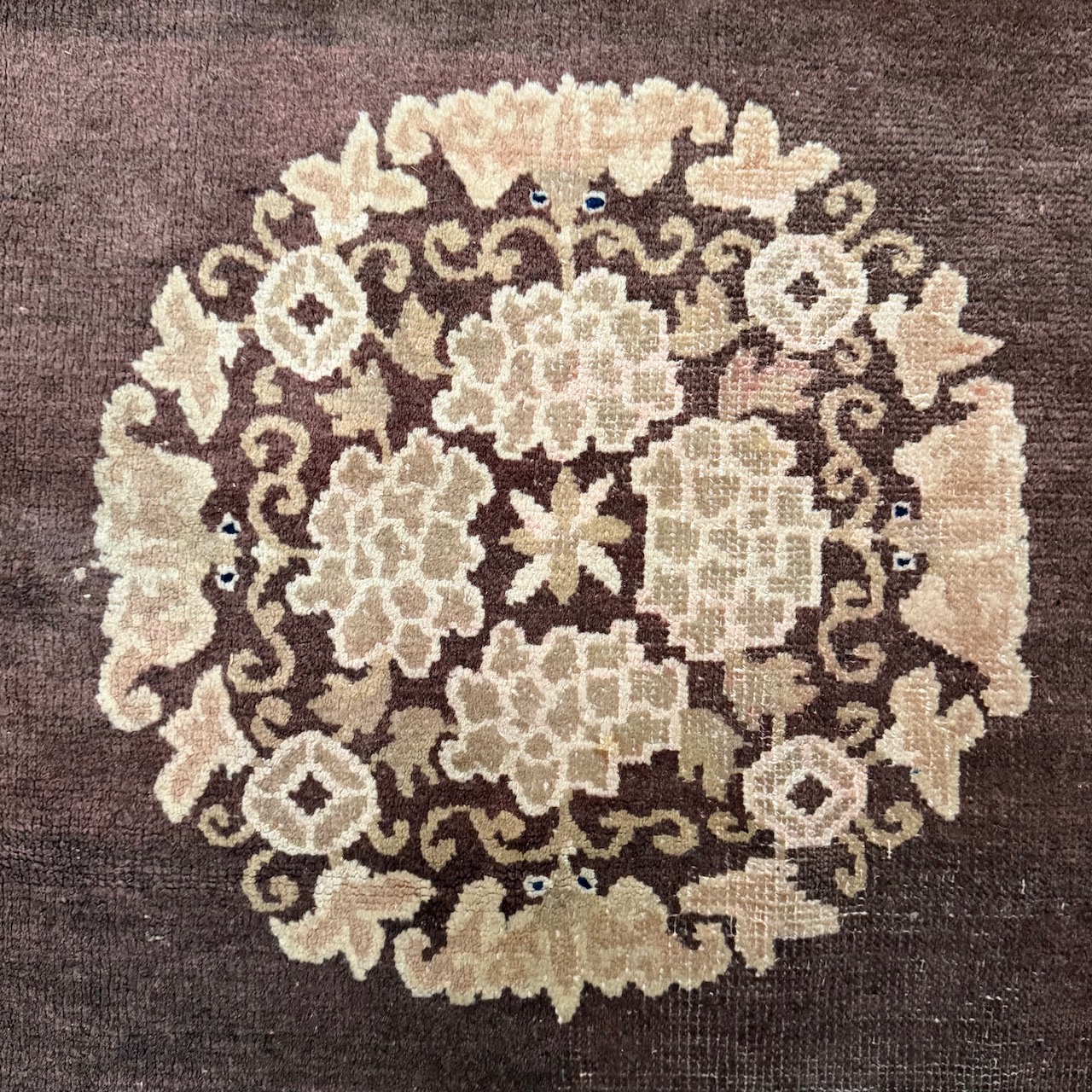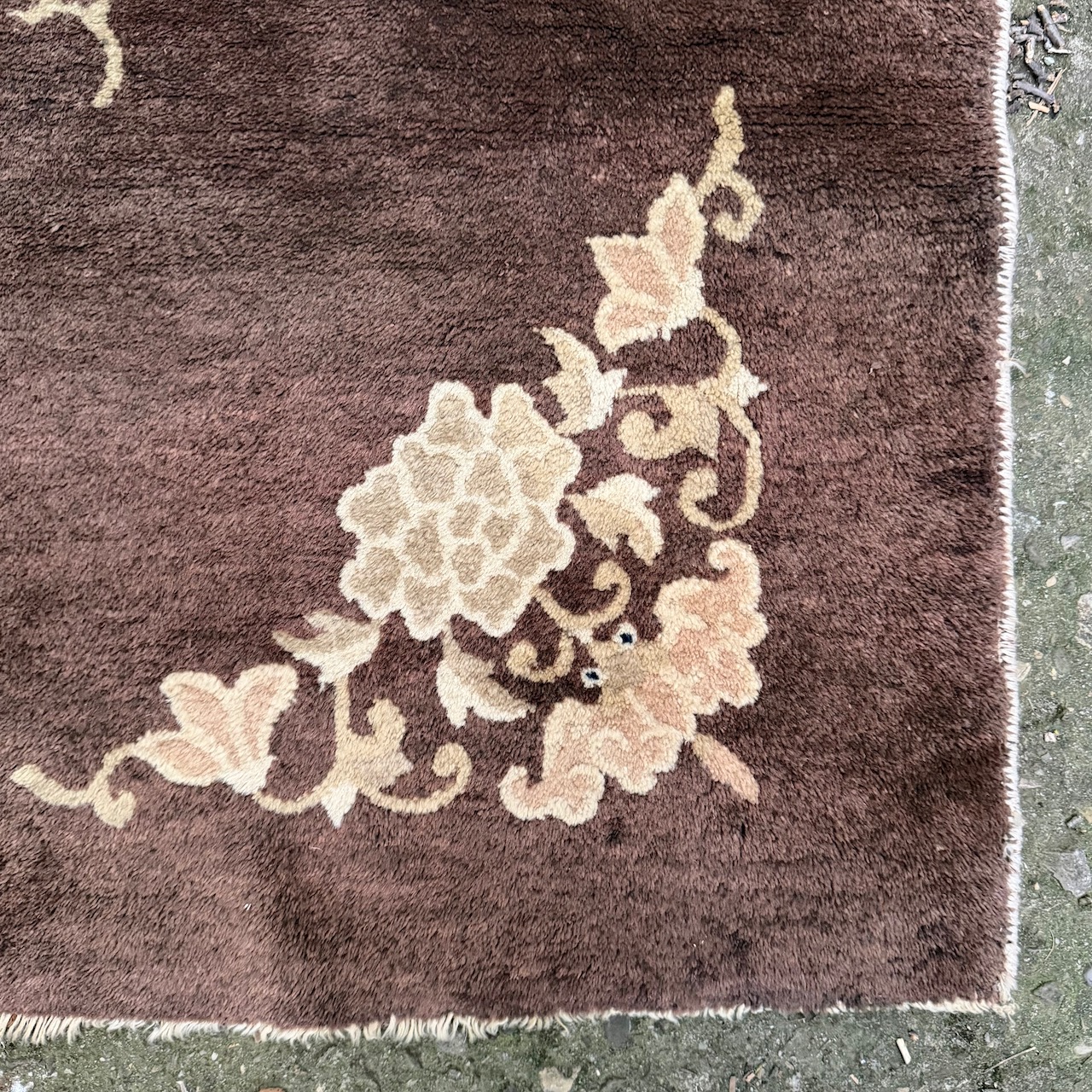 Tappeto Decò in lana circolato, decori floreali sabbia e beige. Italia, sec. XX