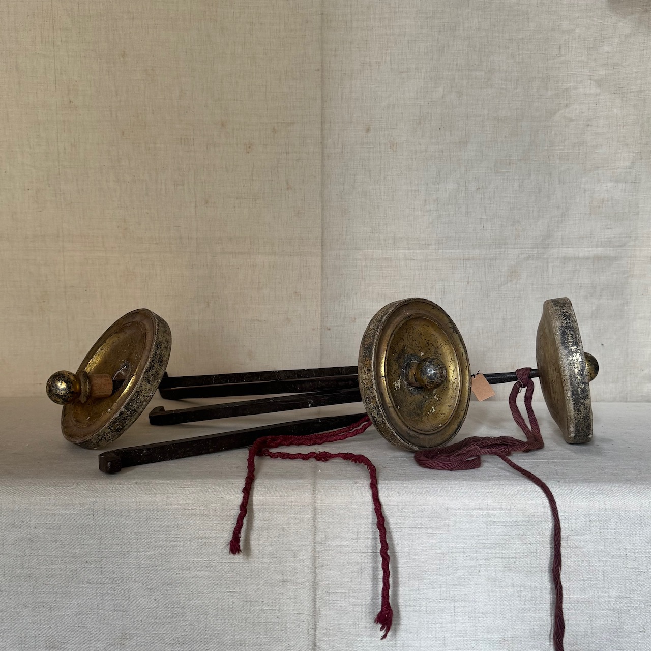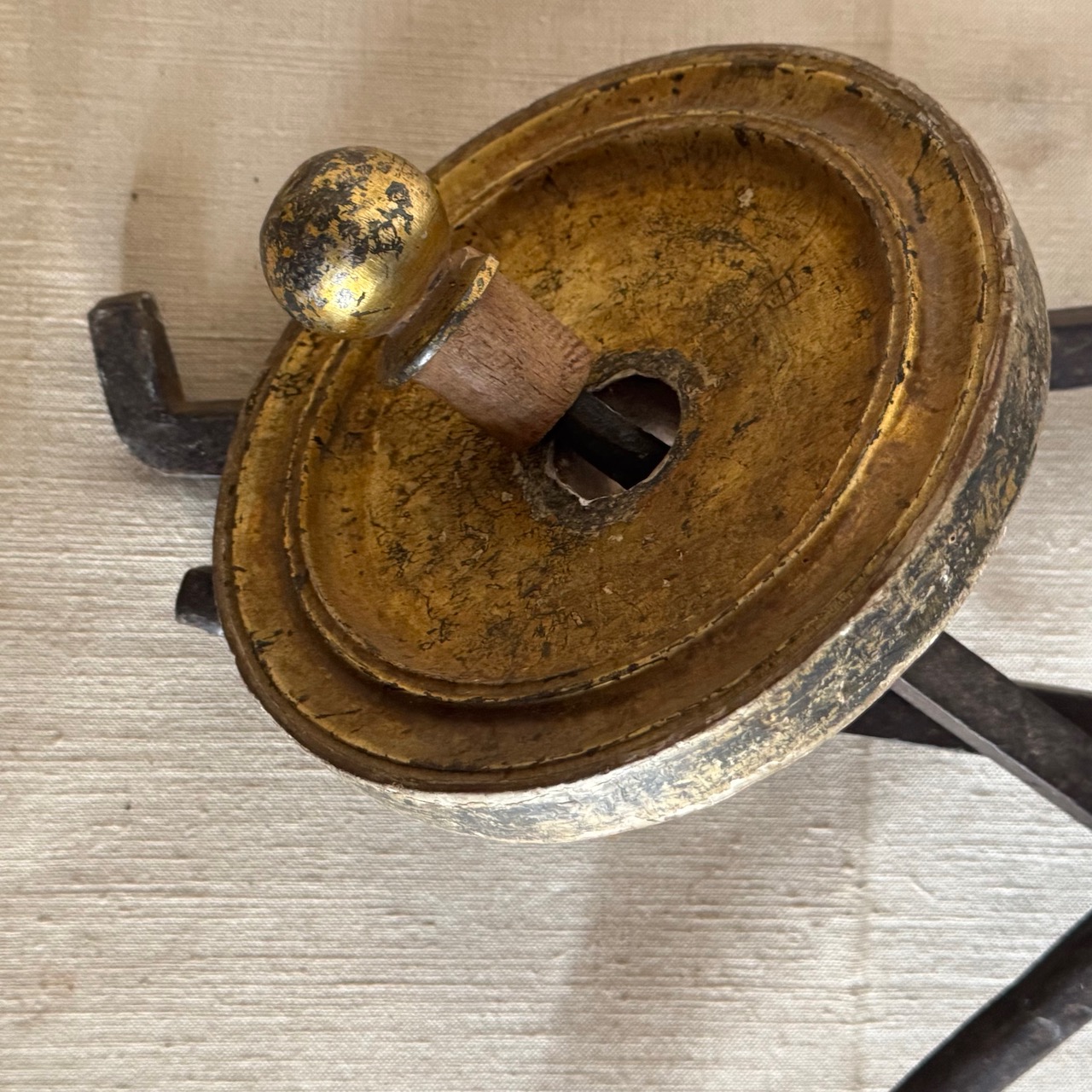 Quattro embrasse per tende in ferro battuto e legno dorato. Provenienza Lucchese. Italia, sec. XIX